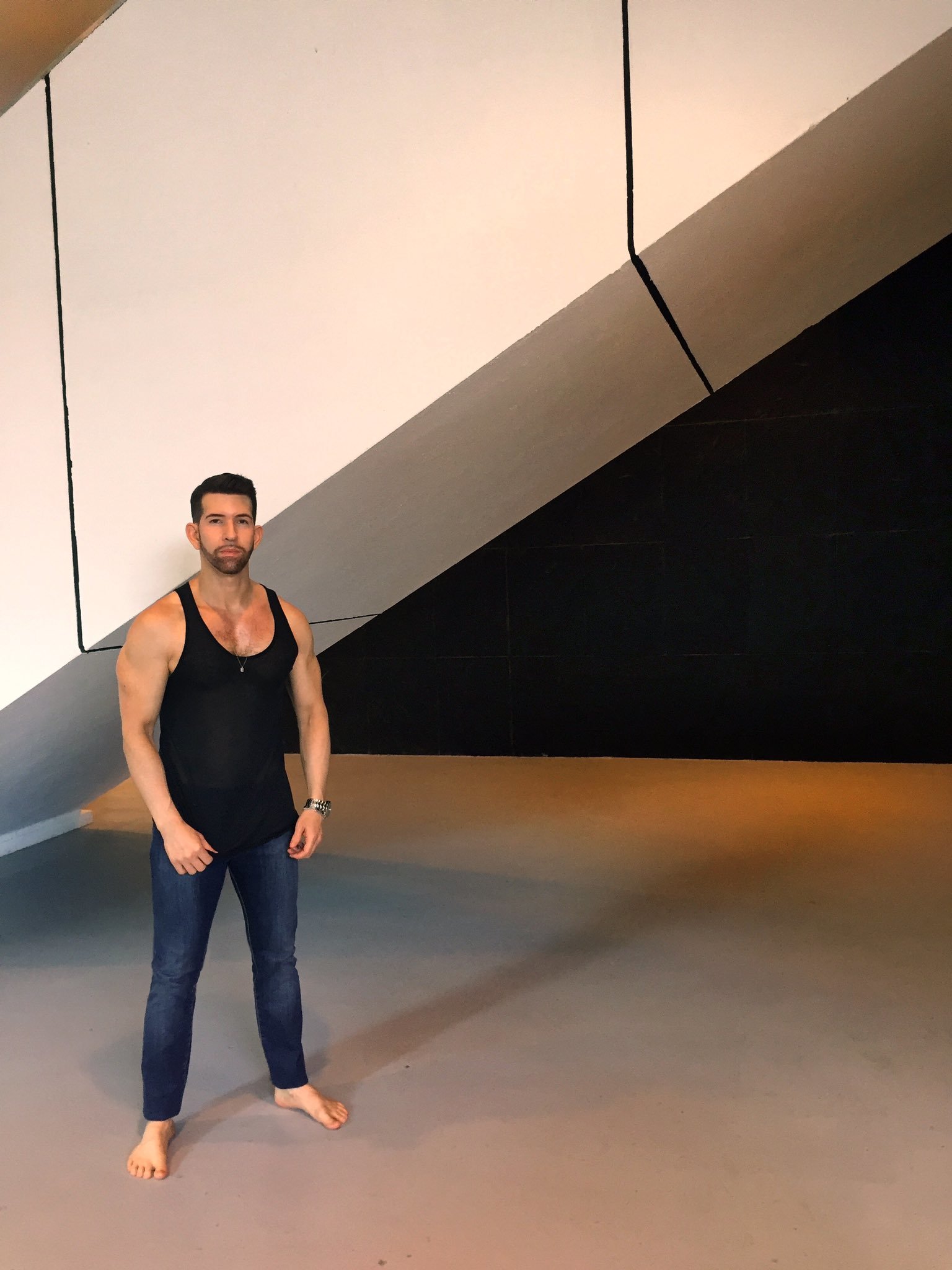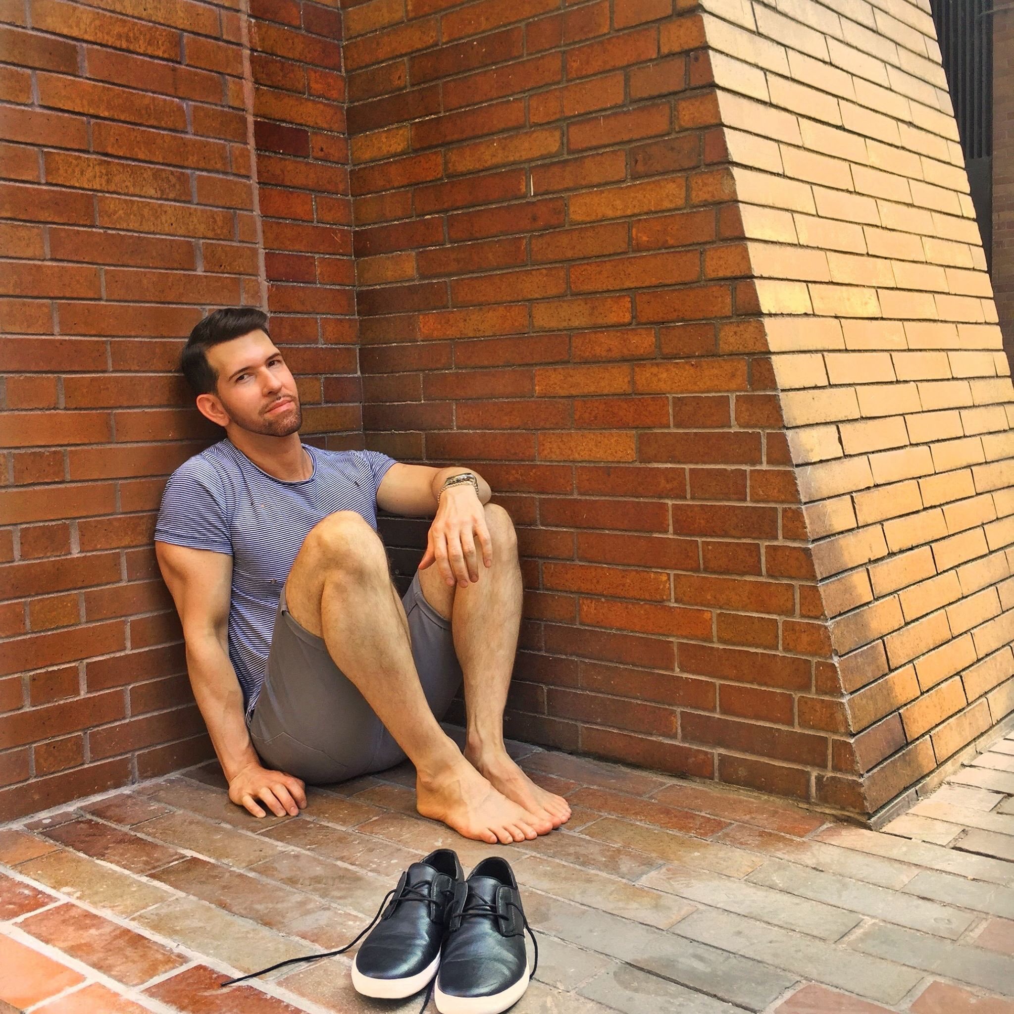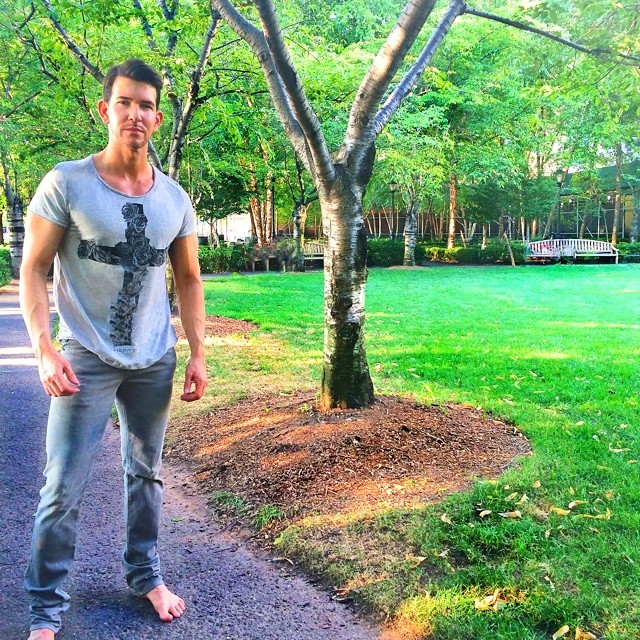 Aiden Leslie barefoot