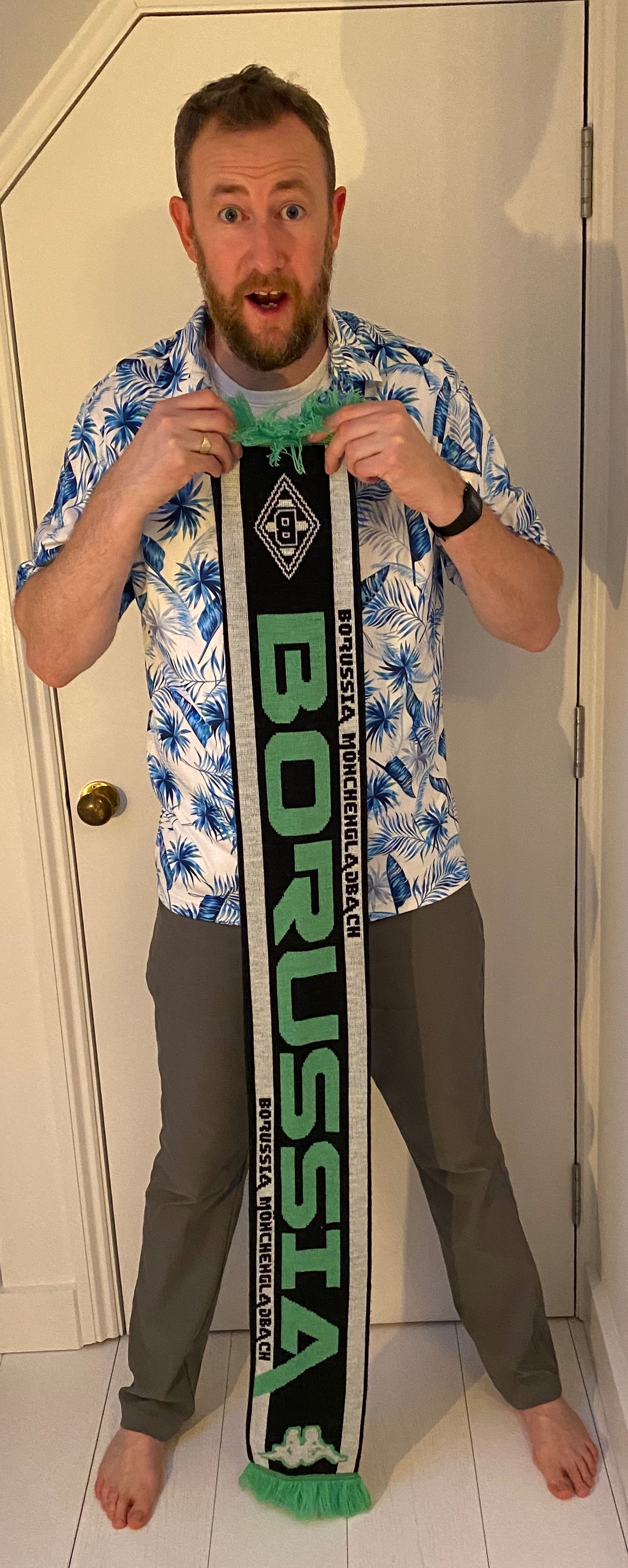 Alex Horne barefoot