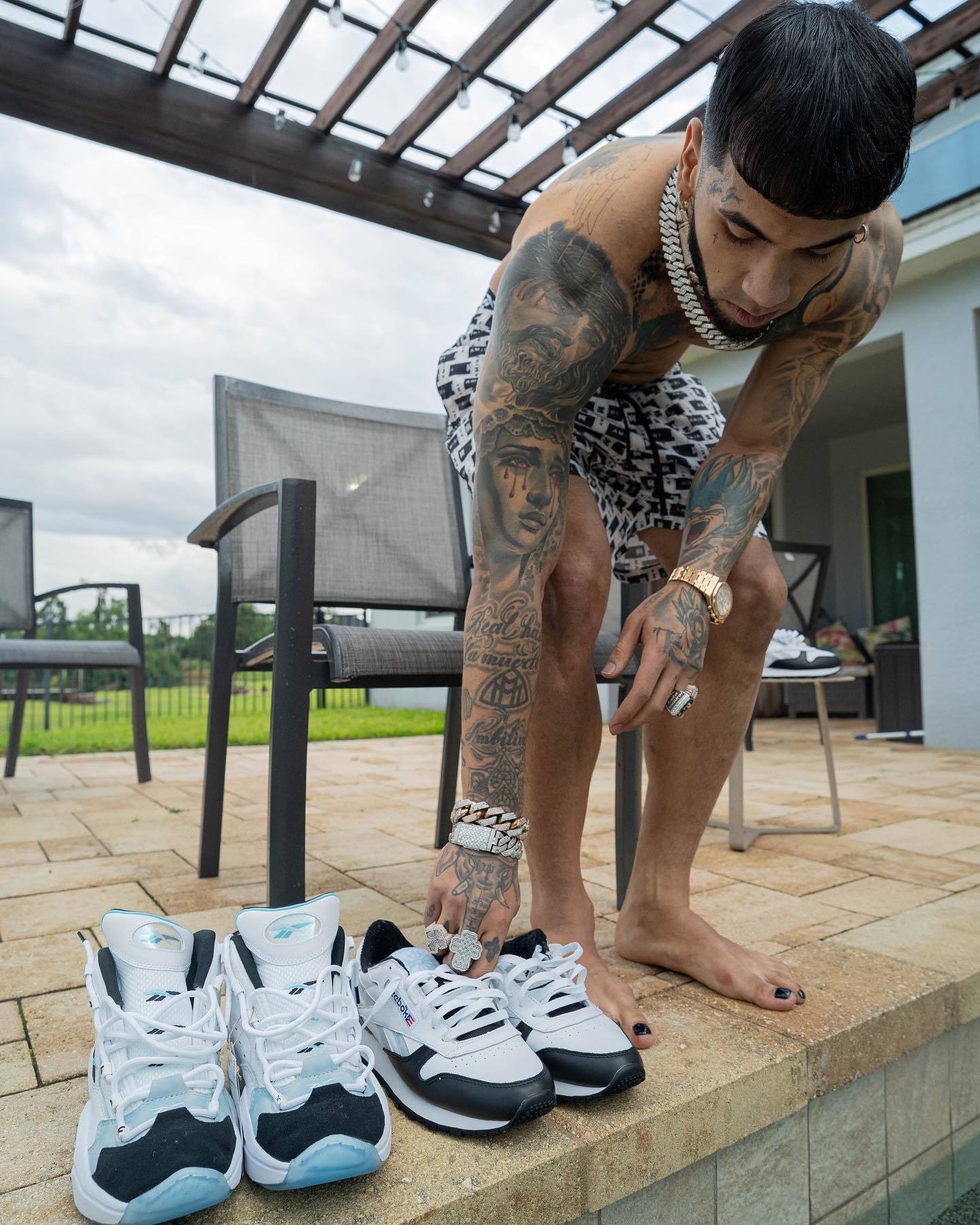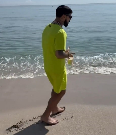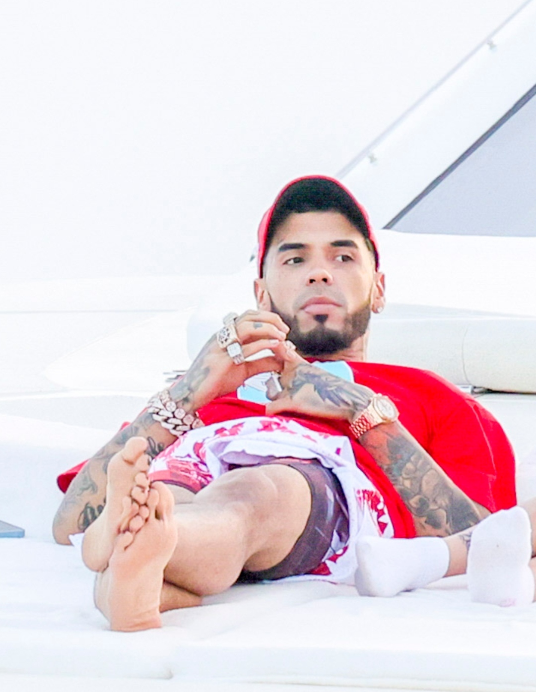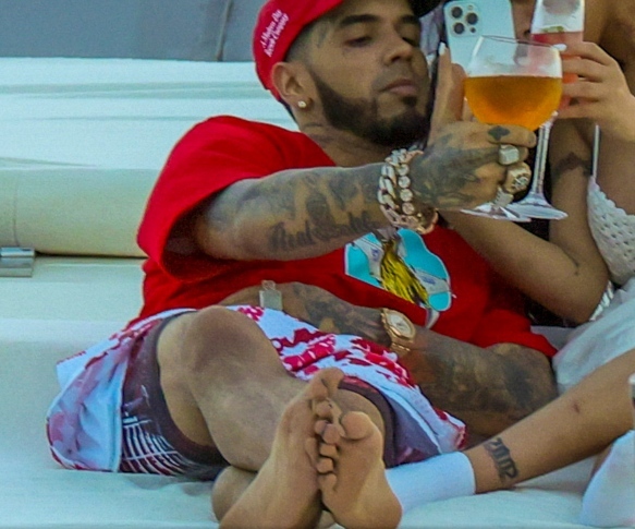 Anuel AA barefoot