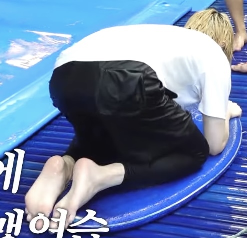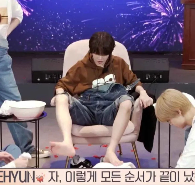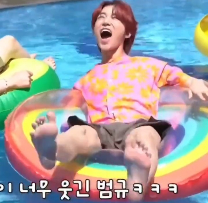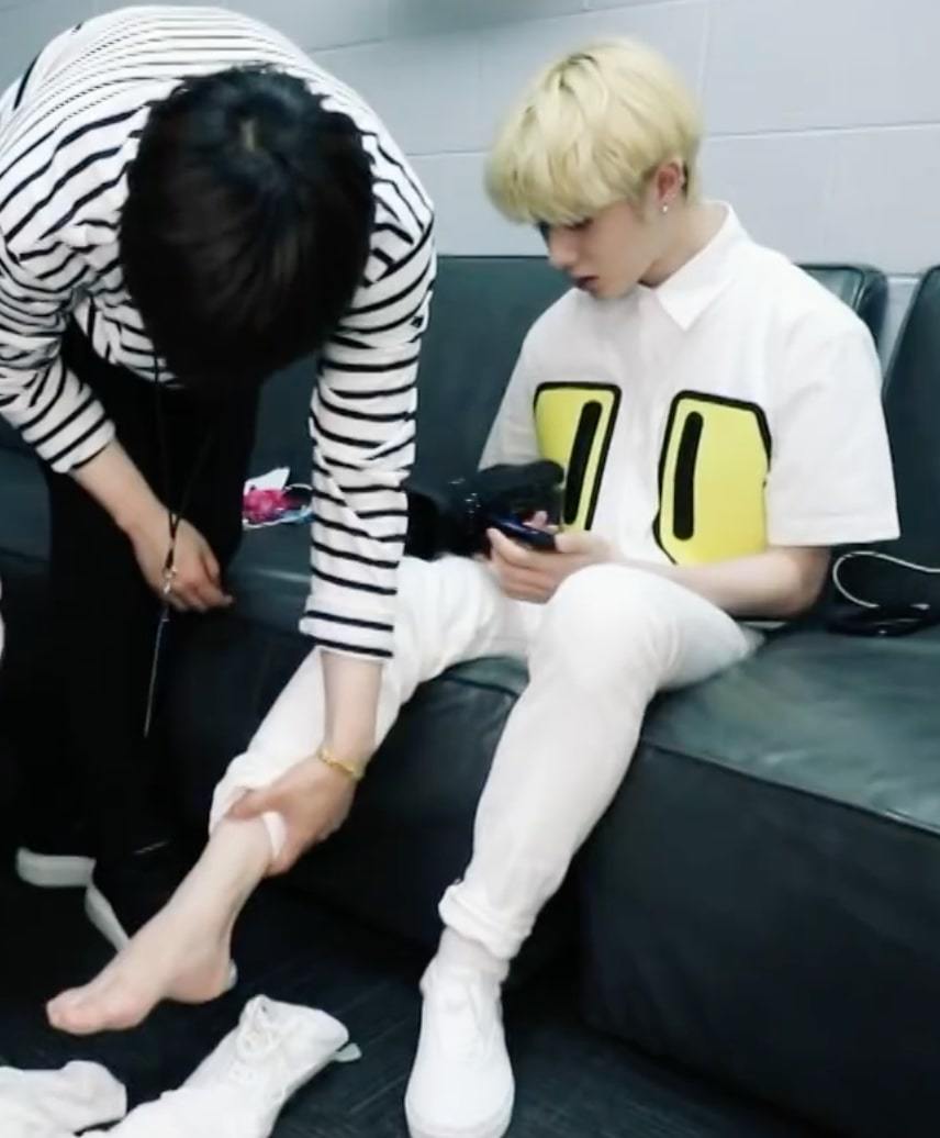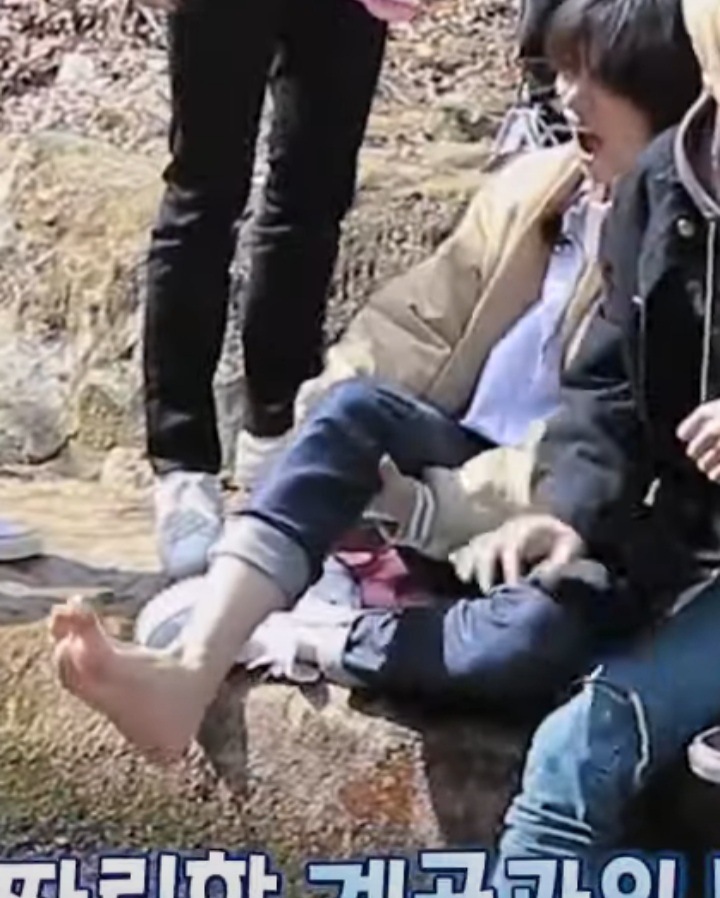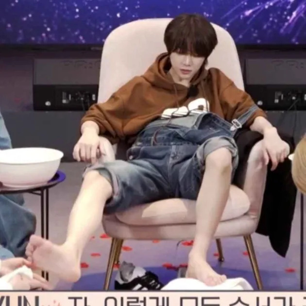 Beomgyu barefoot