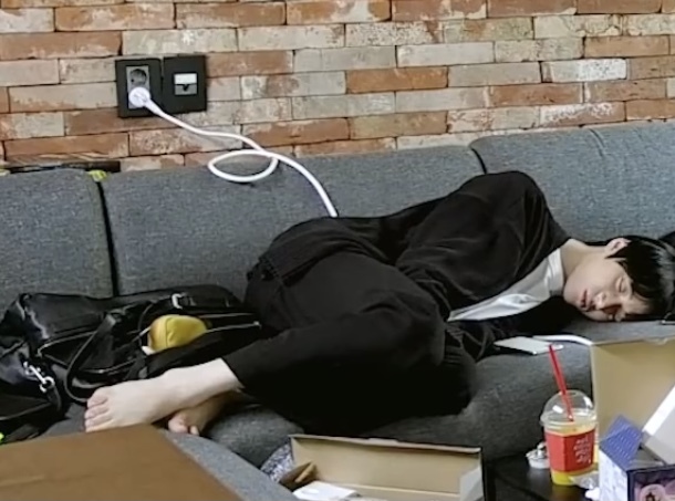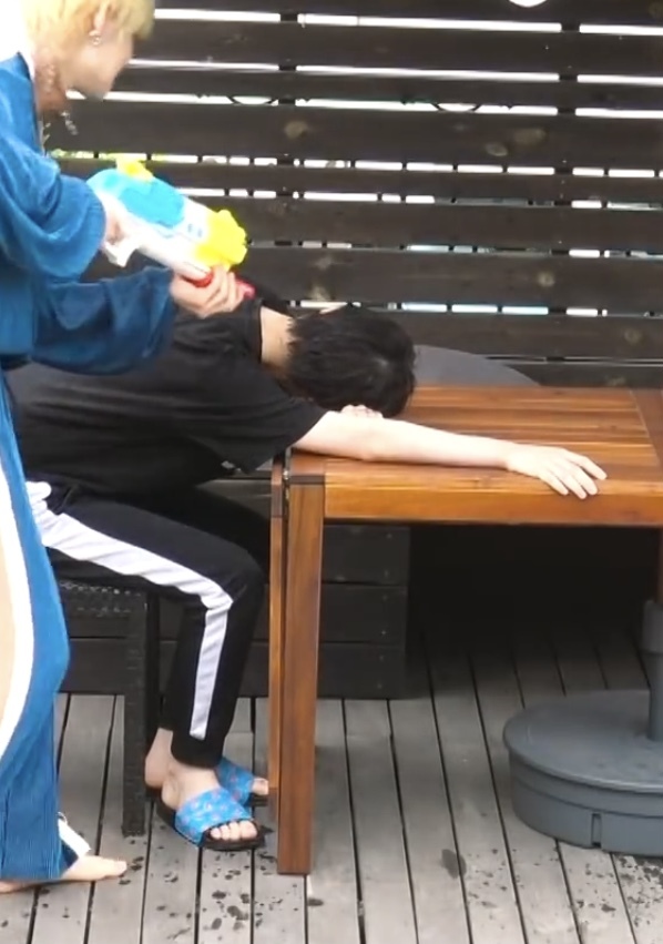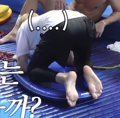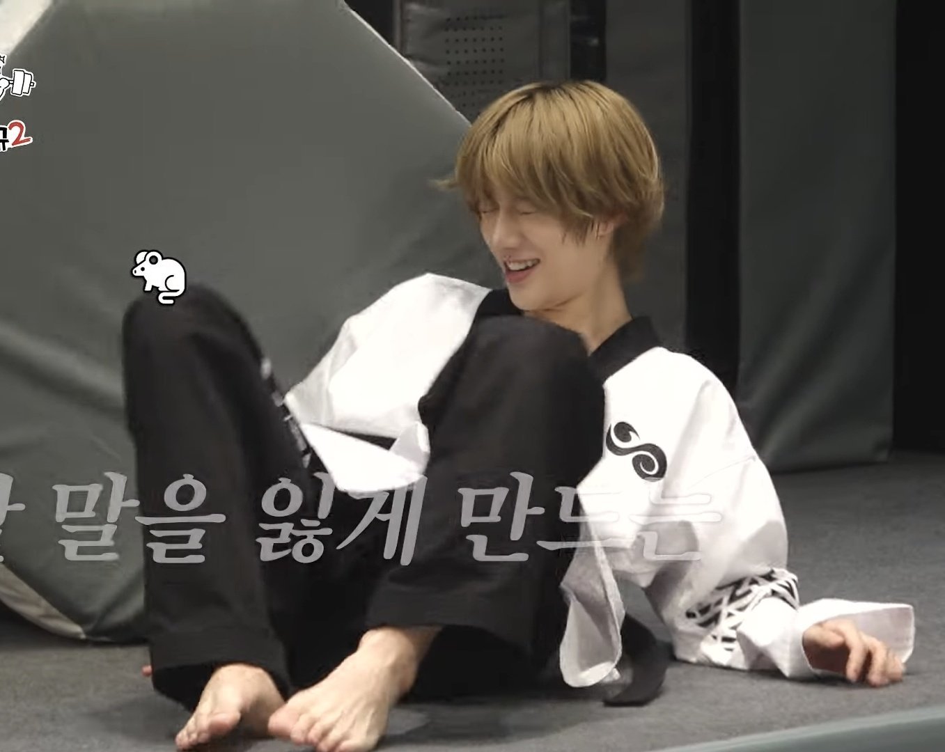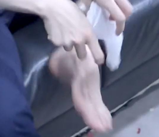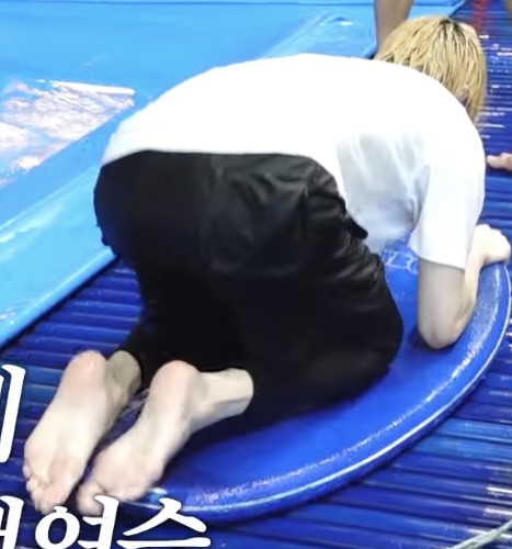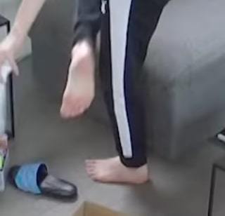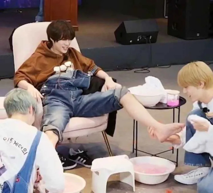 Beomgyu barefoot