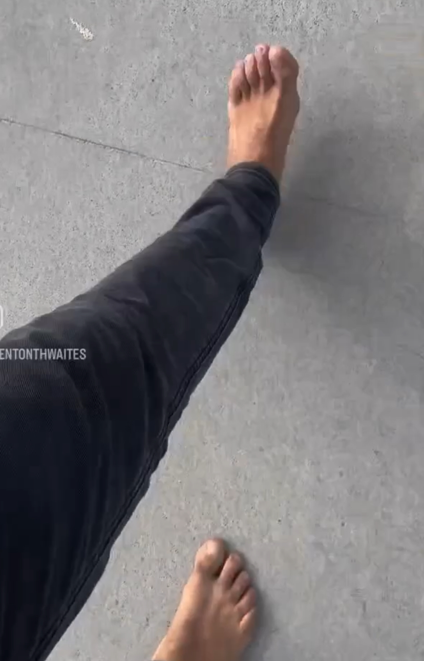 Brenton Thwaites barefoot