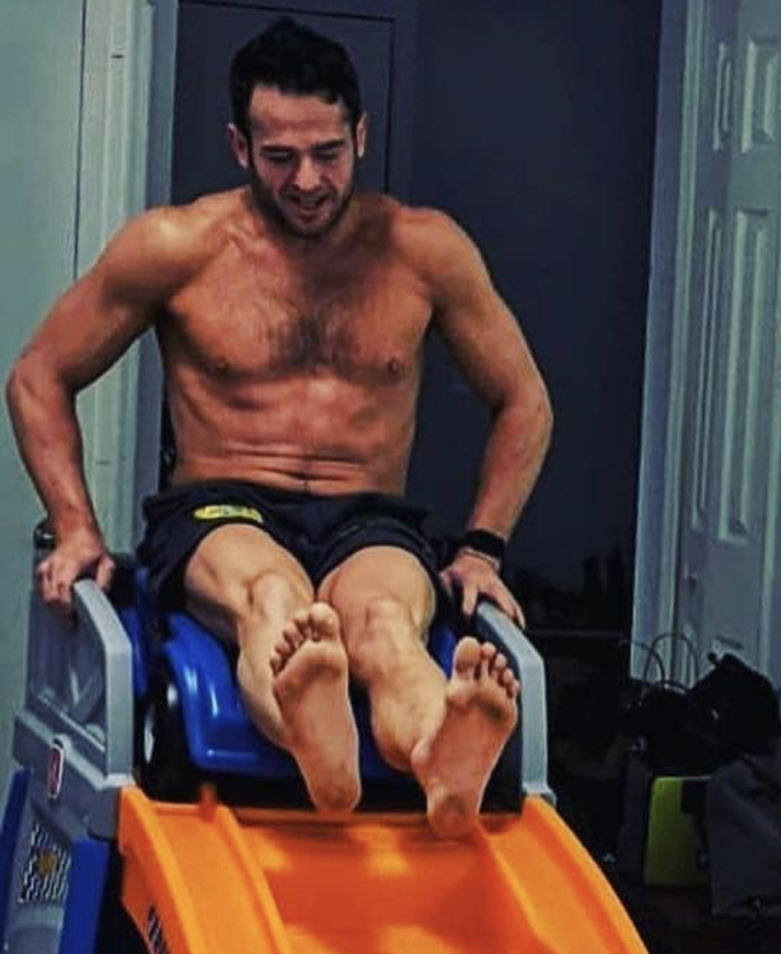 Chris Lindsey barefoot
