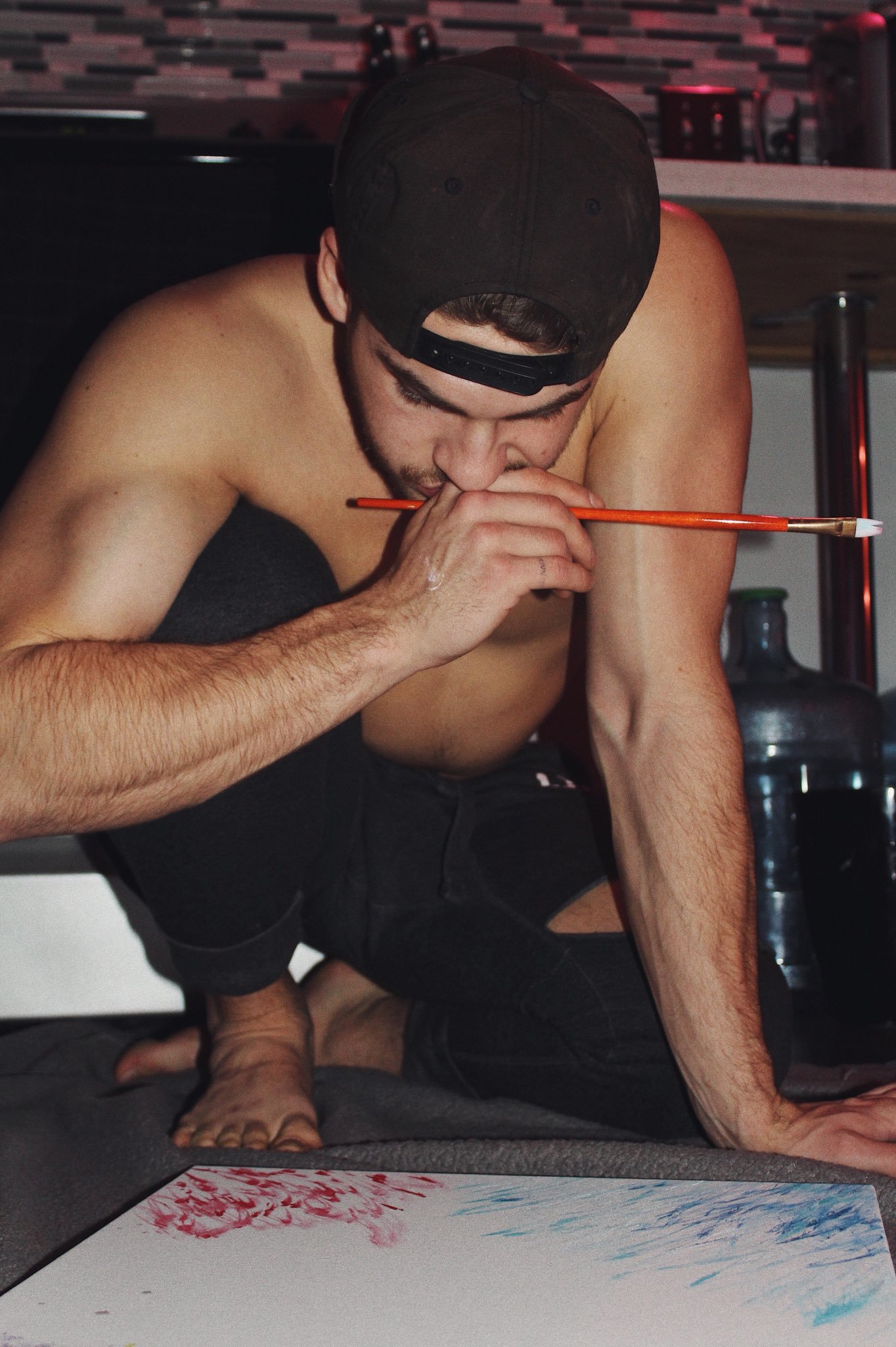 Cody Christian barefoot
