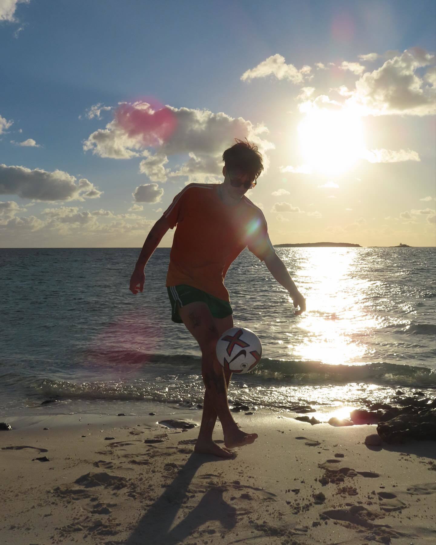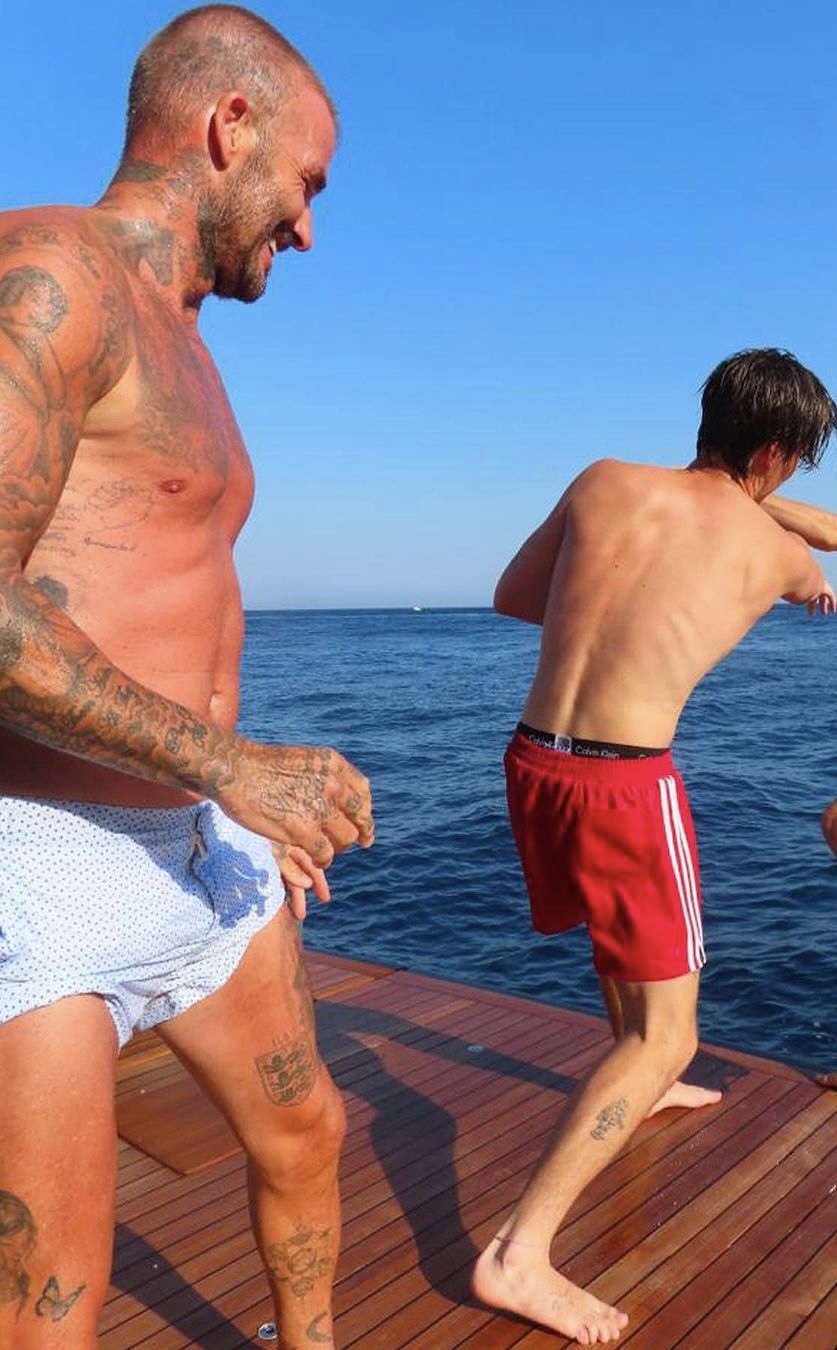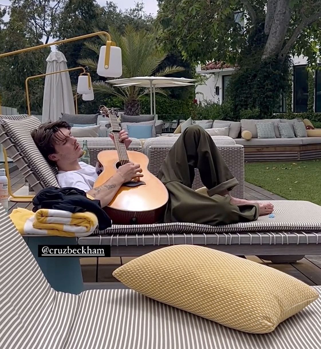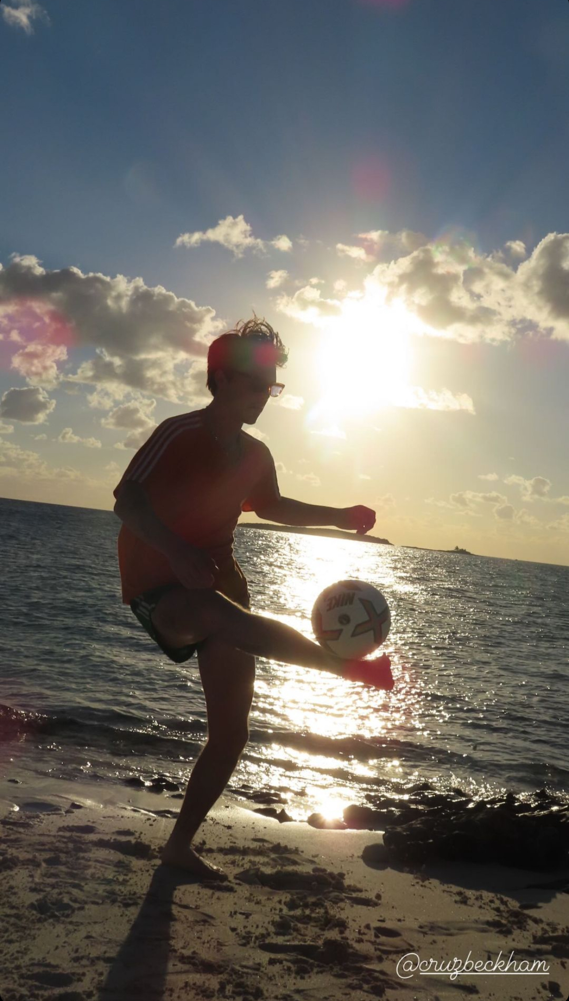 Cruz Beckham barefoot