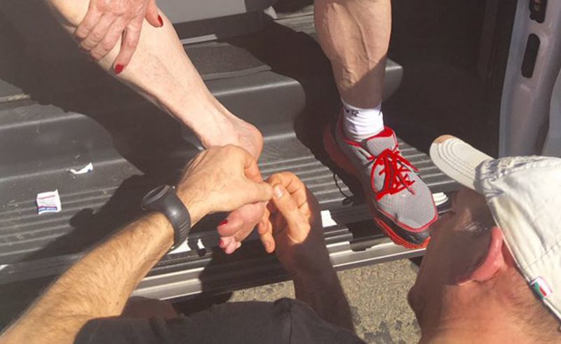 Eddie Izzard barefoot