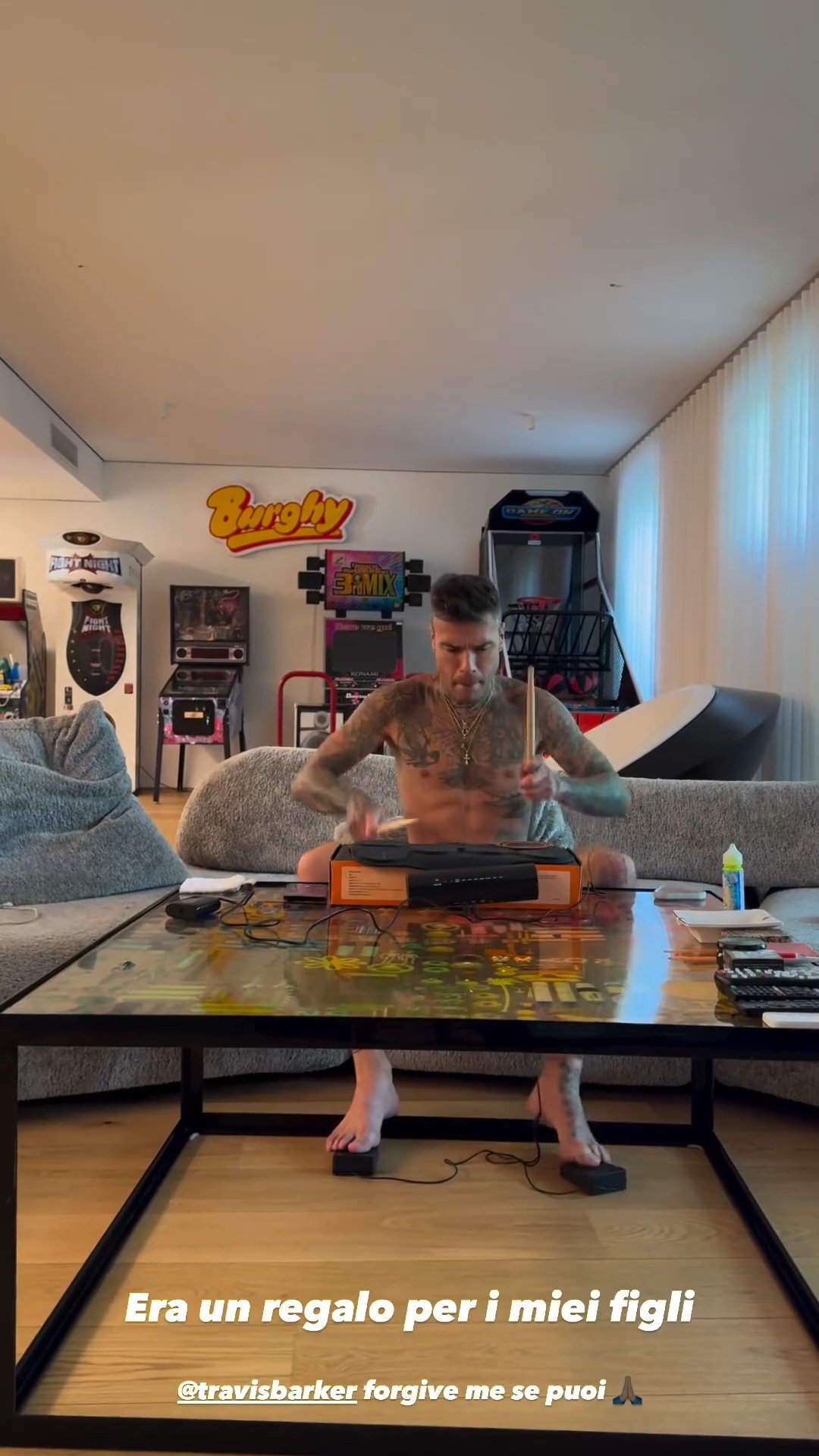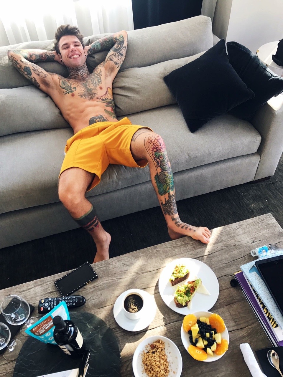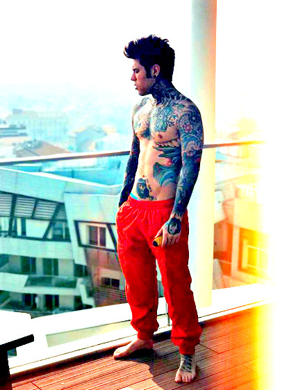 Fedez barefoot