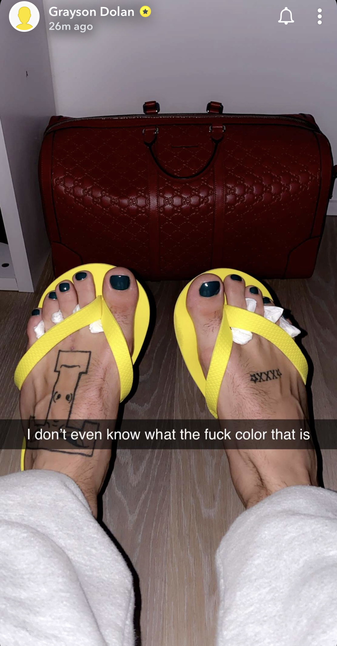 Grayson Dolan barefoot