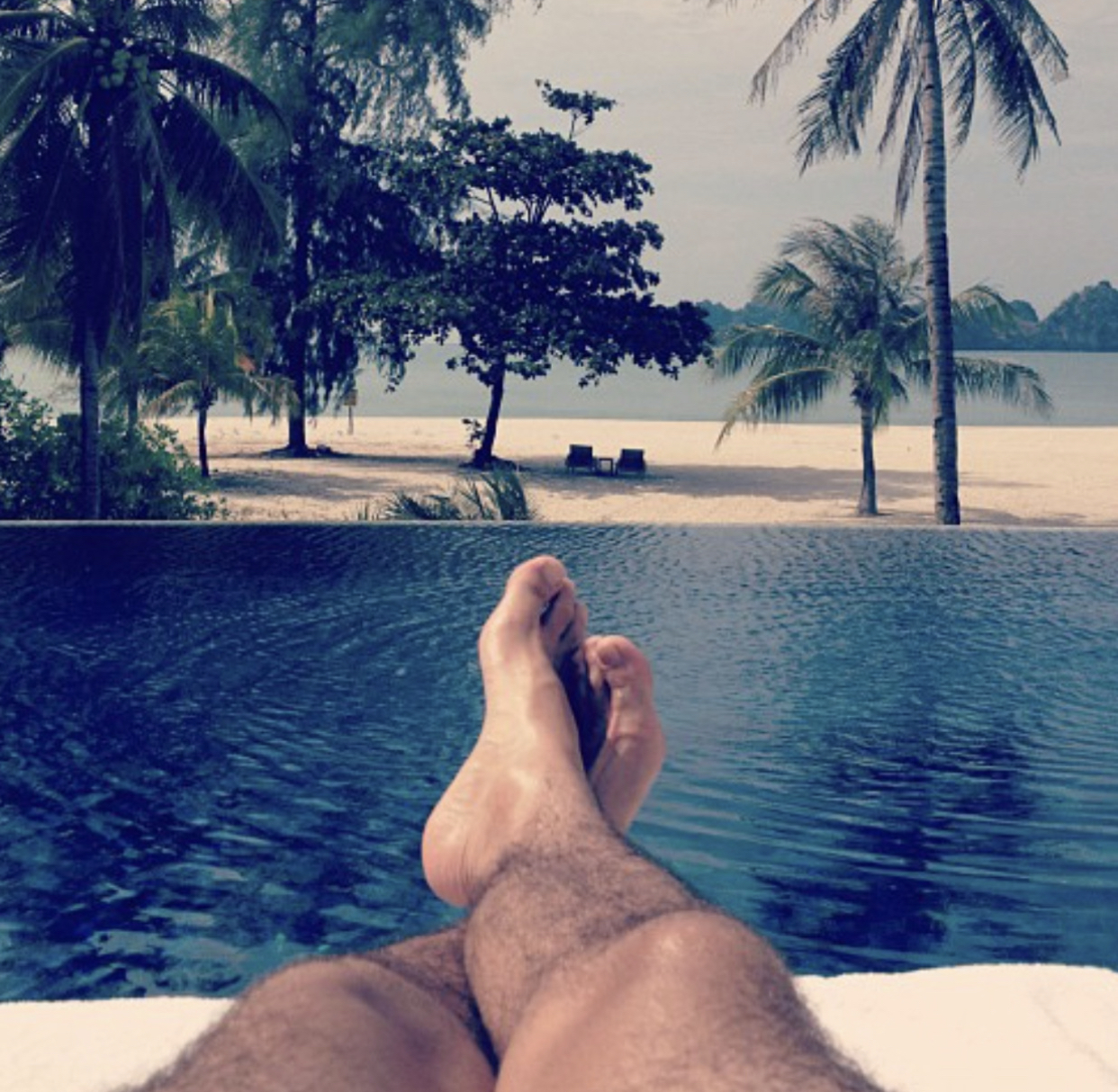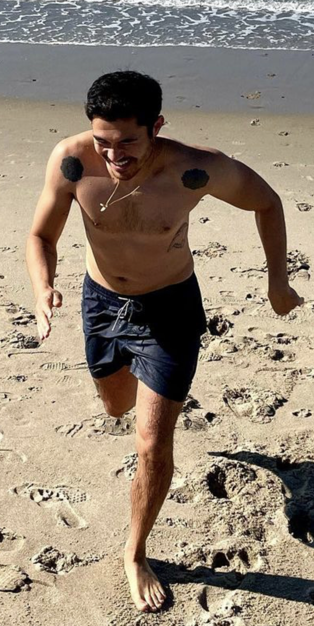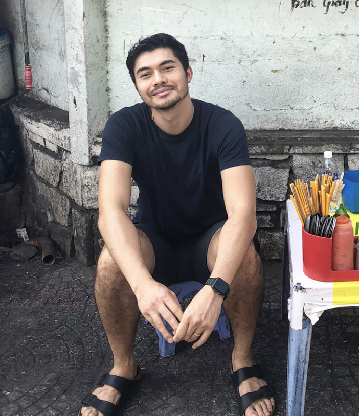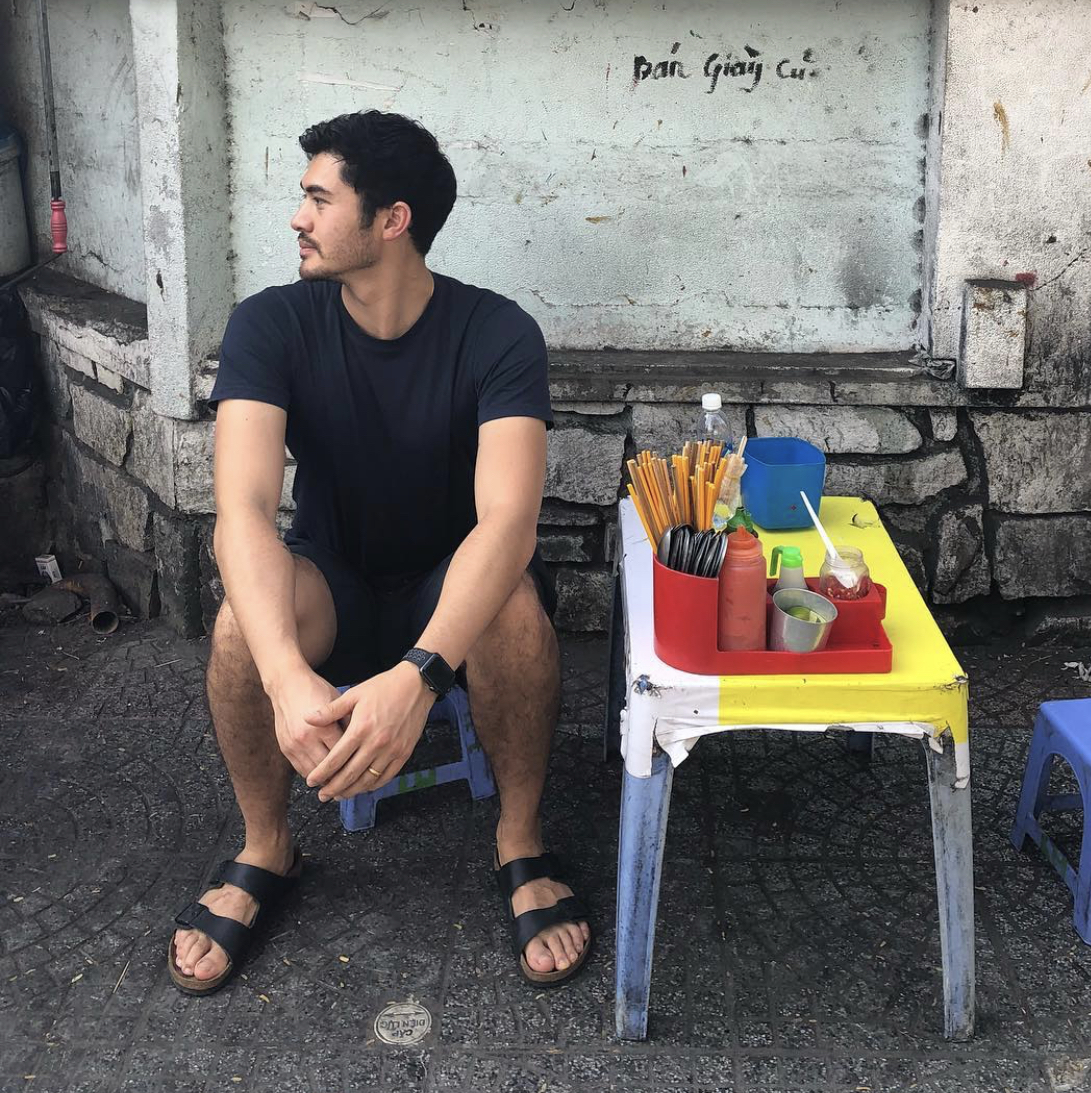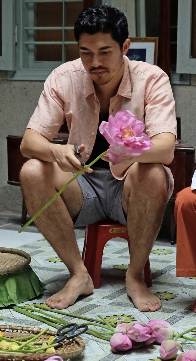 Henry Golding barefoot