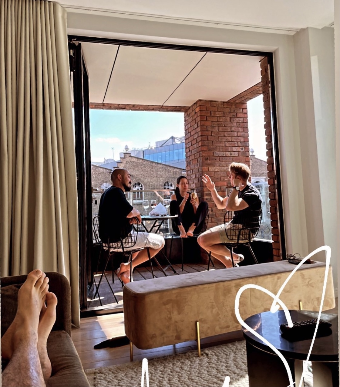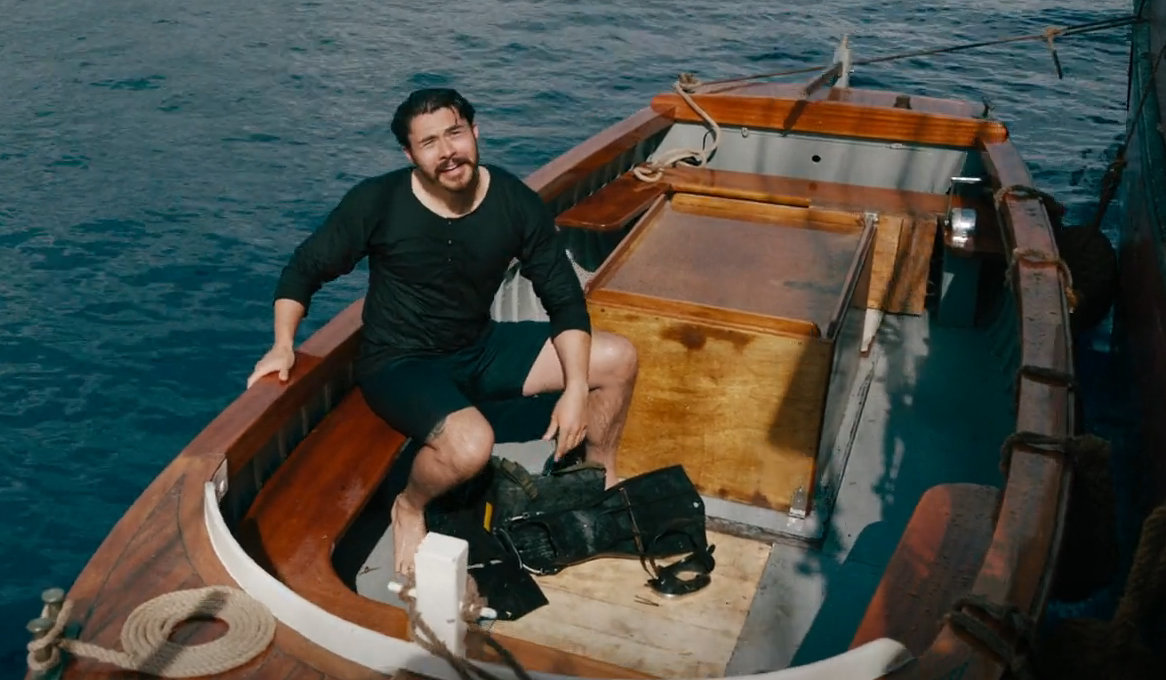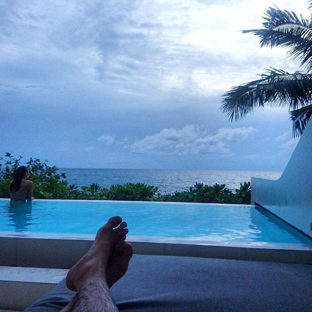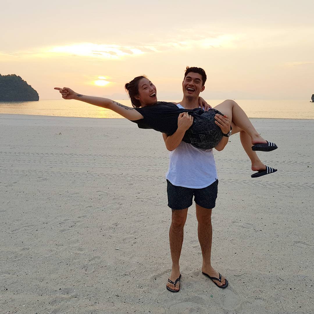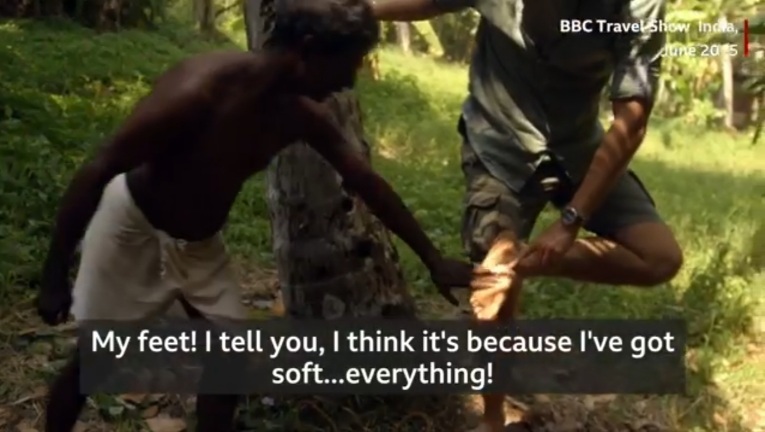 Henry Golding barefoot