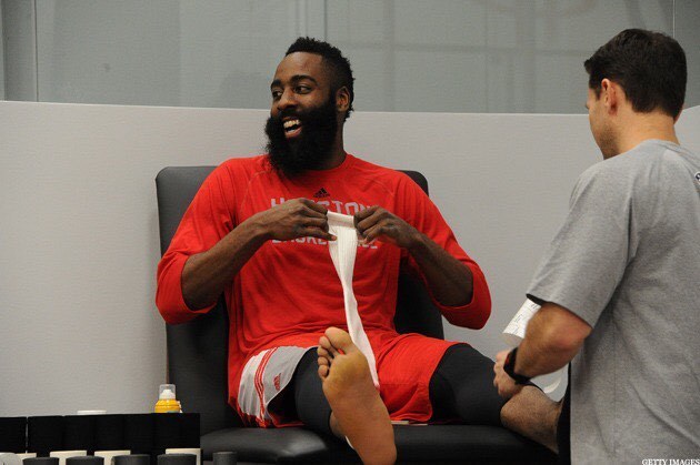 James Harden barefoot