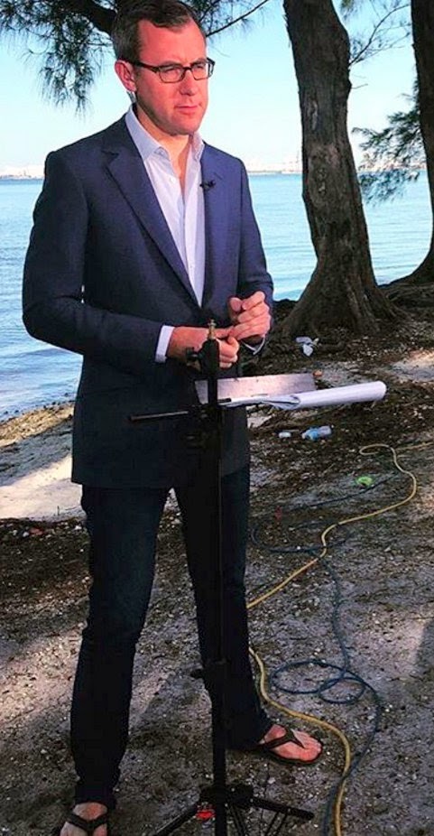 Jeff Zeleny barefoot