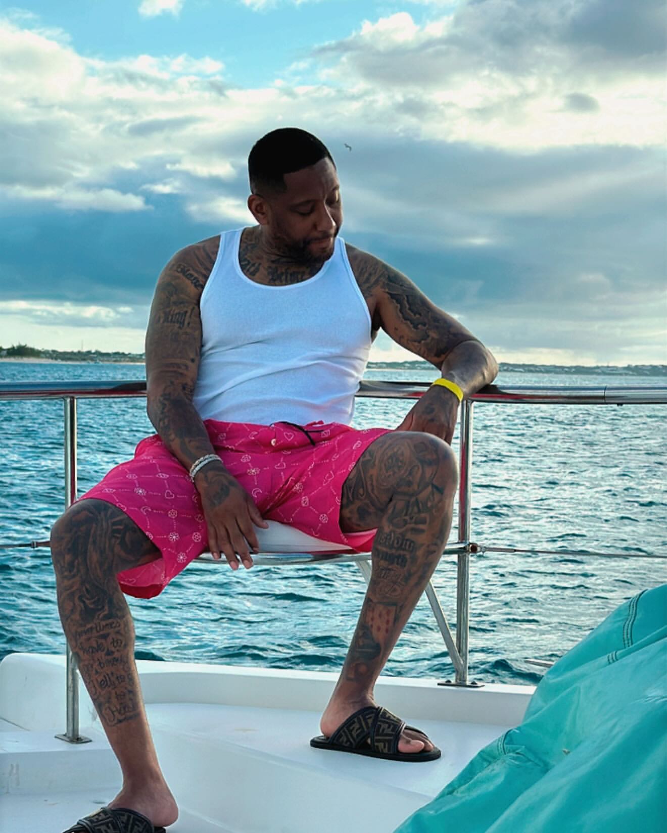 Jermaine 'Maino' Coleman barefoot