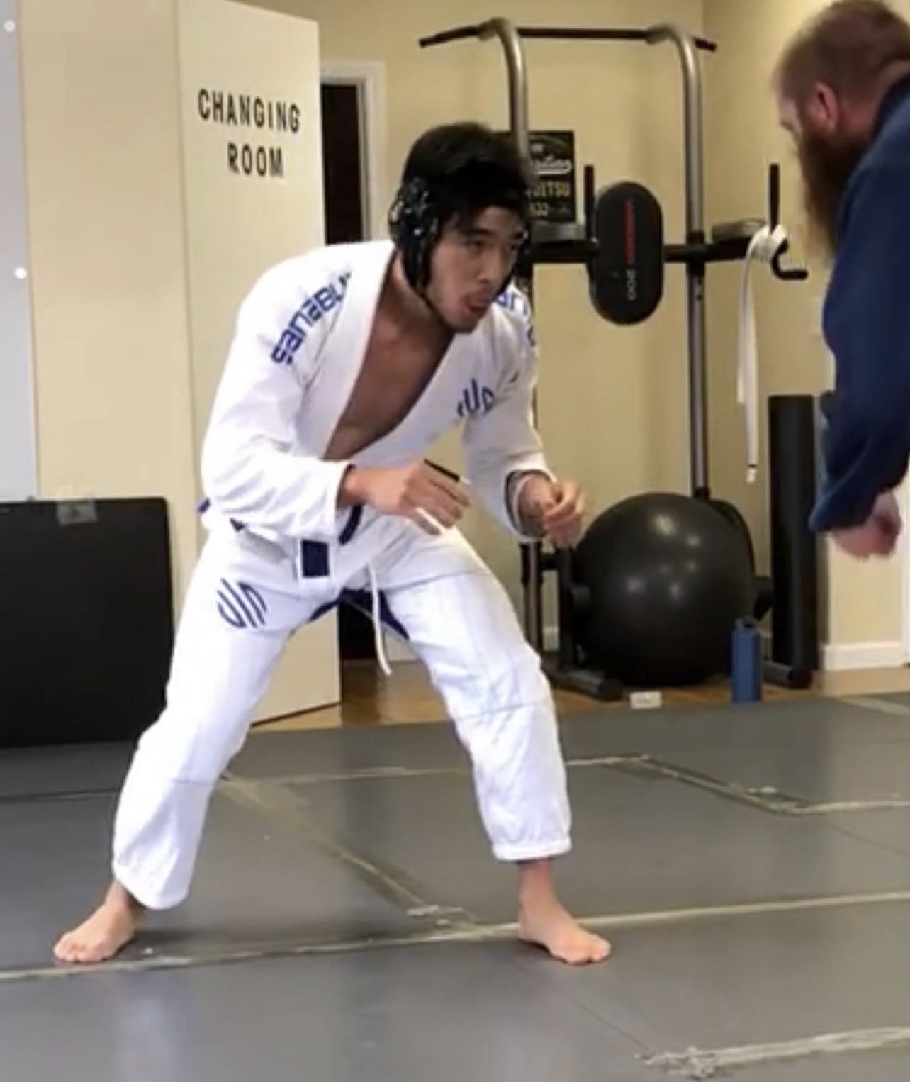 Justin Chien barefoot