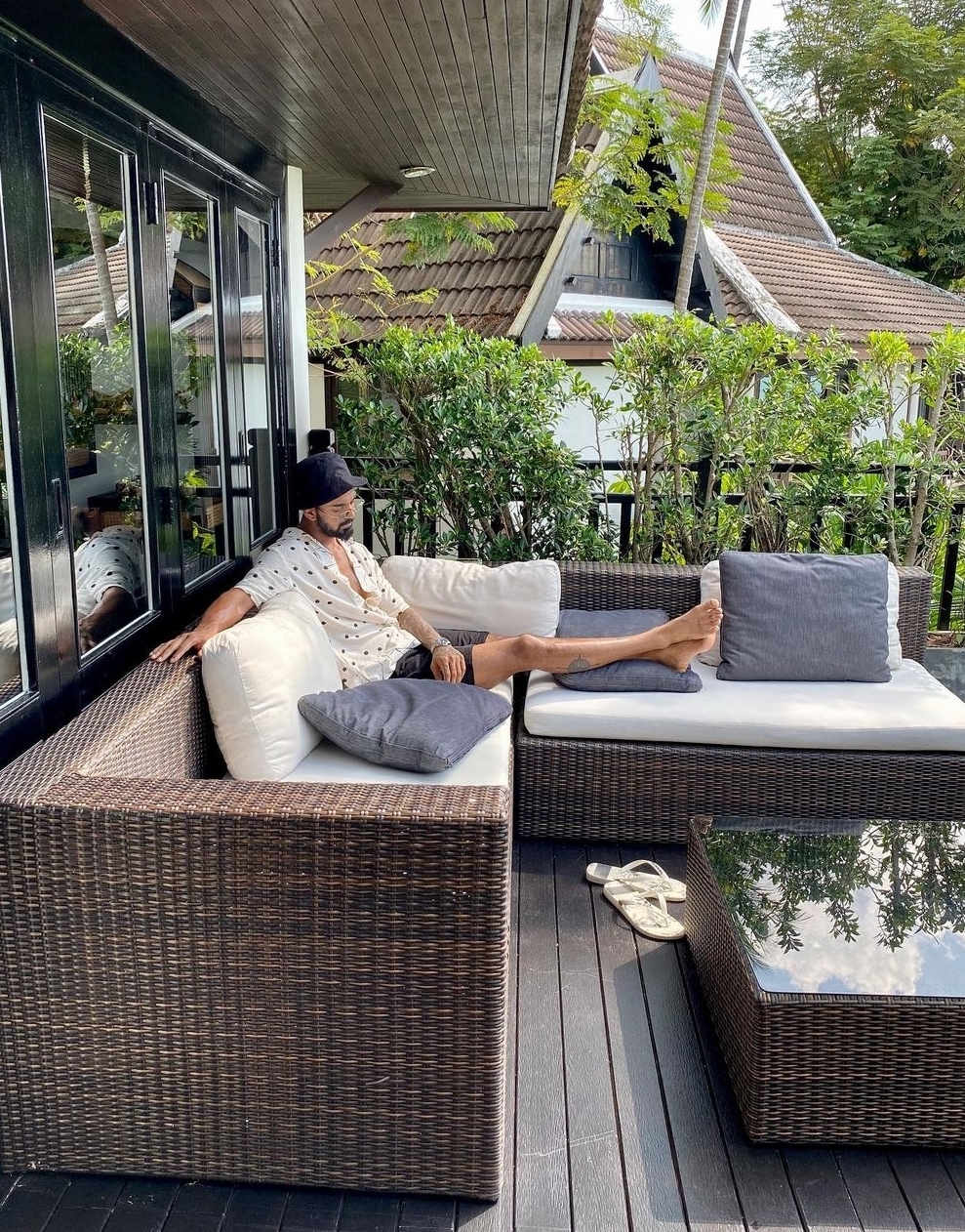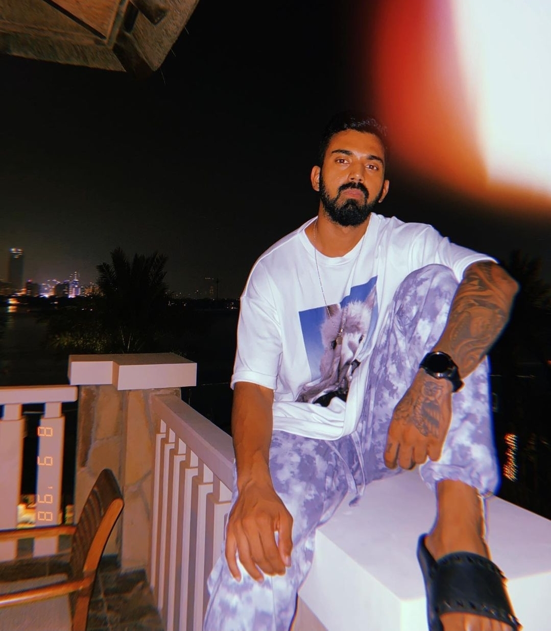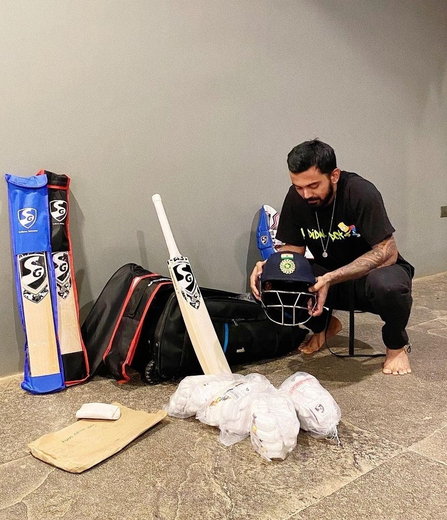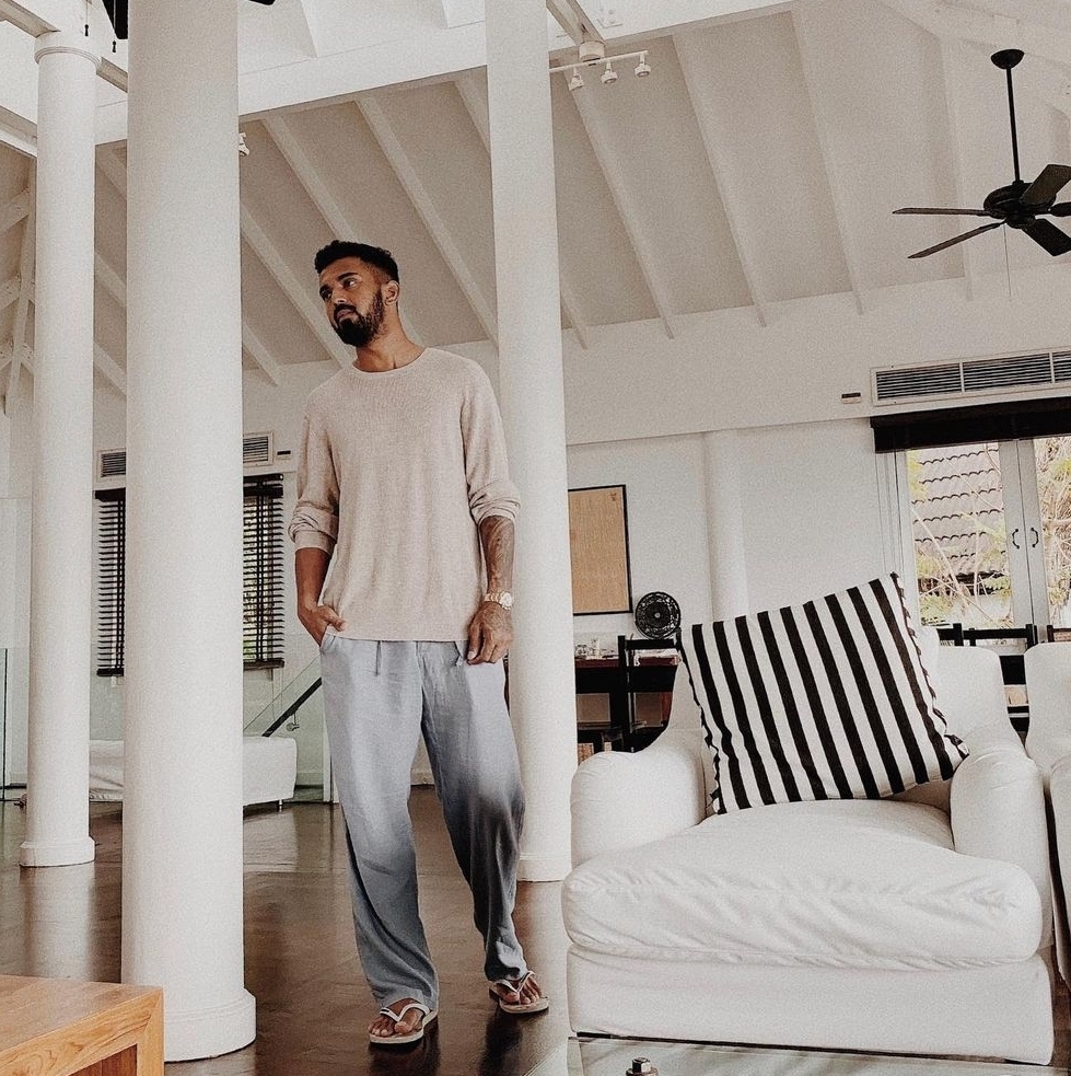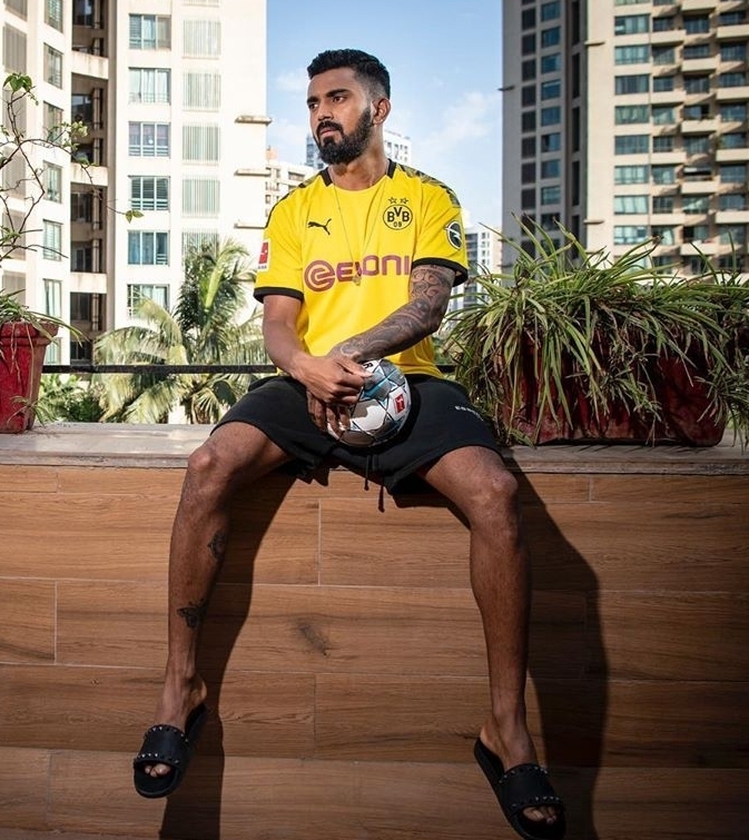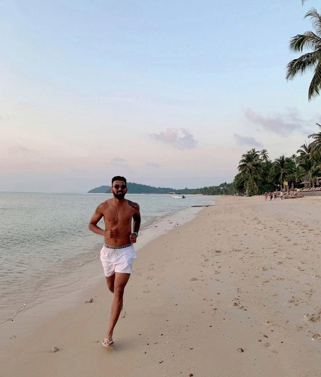 K.L. Rahul barefoot