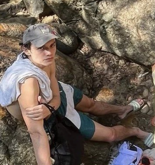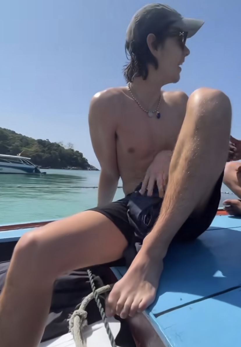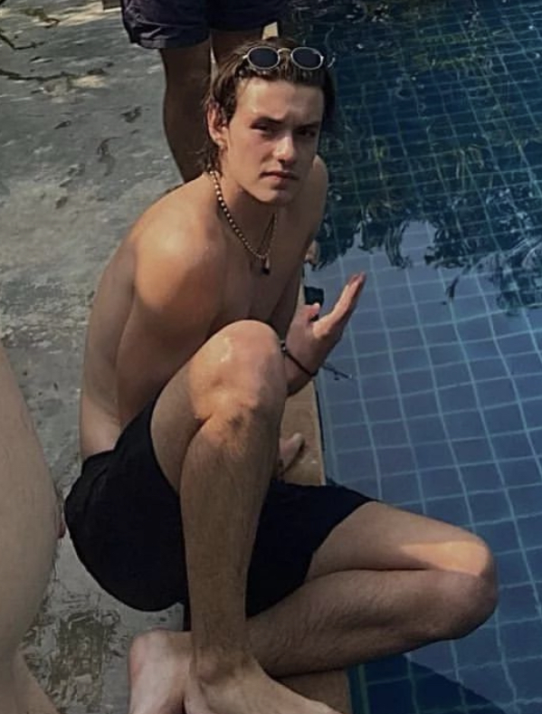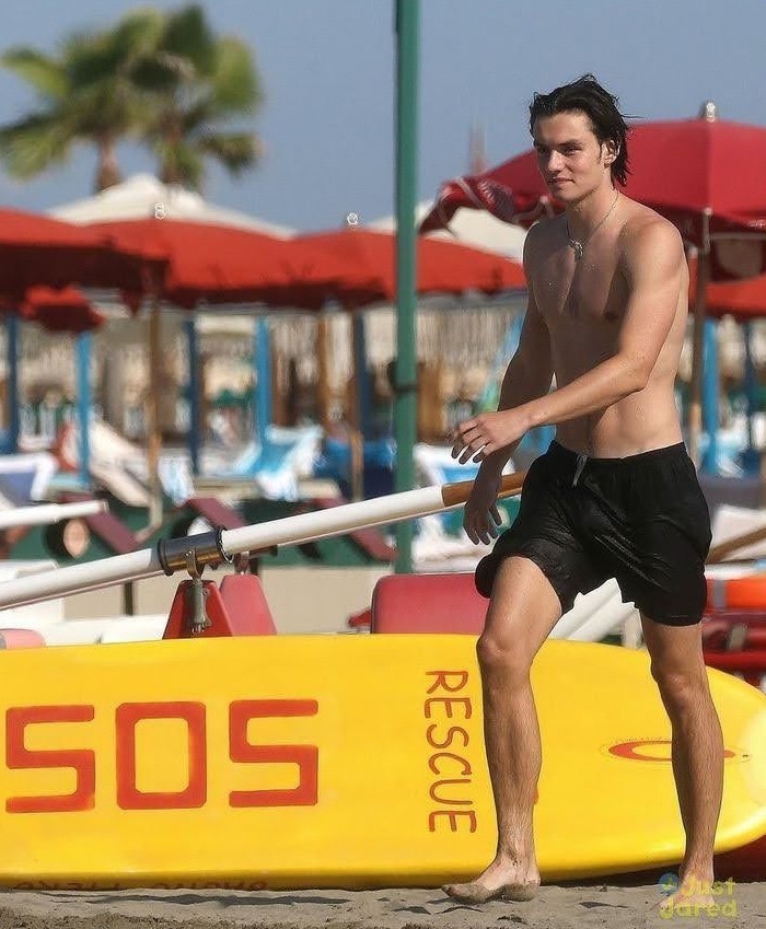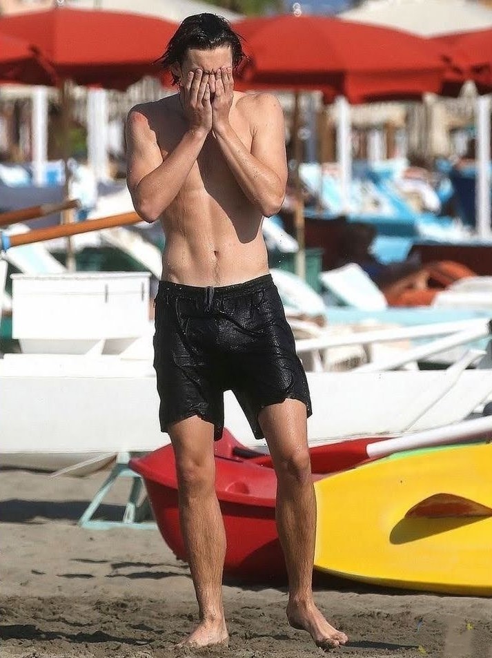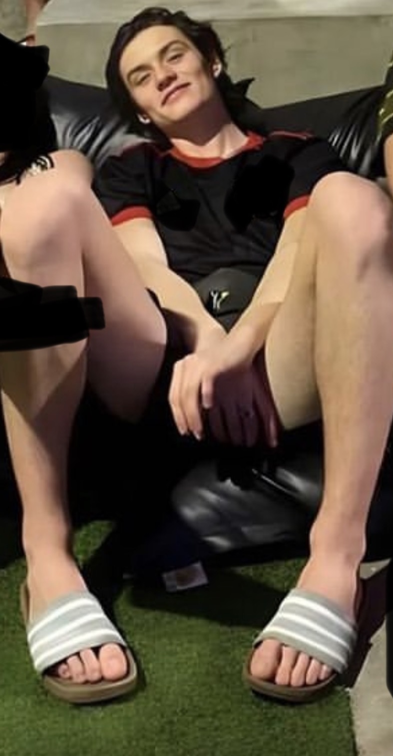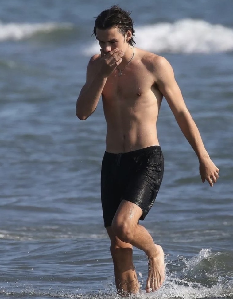 Louis Partridge barefoot
