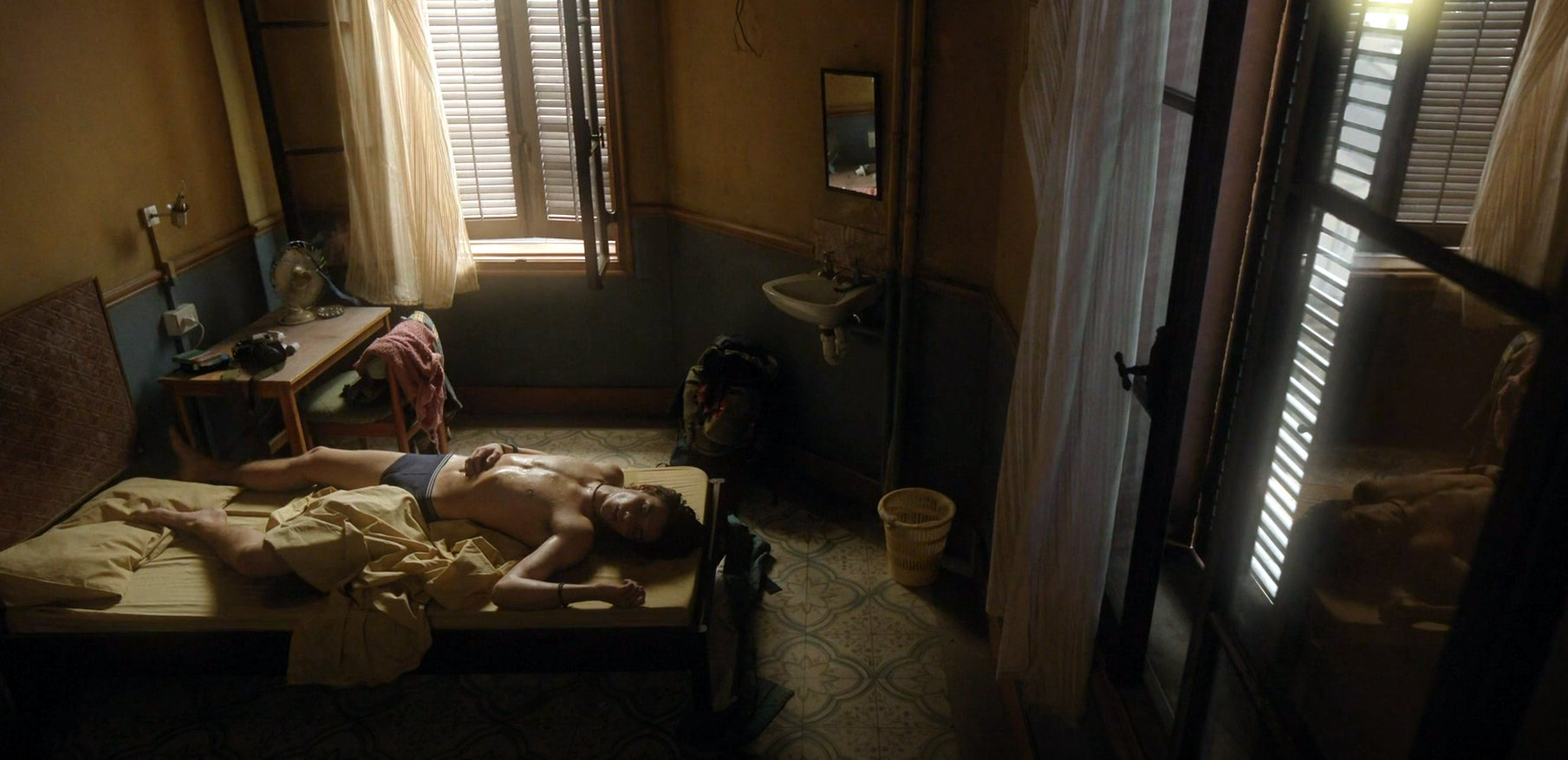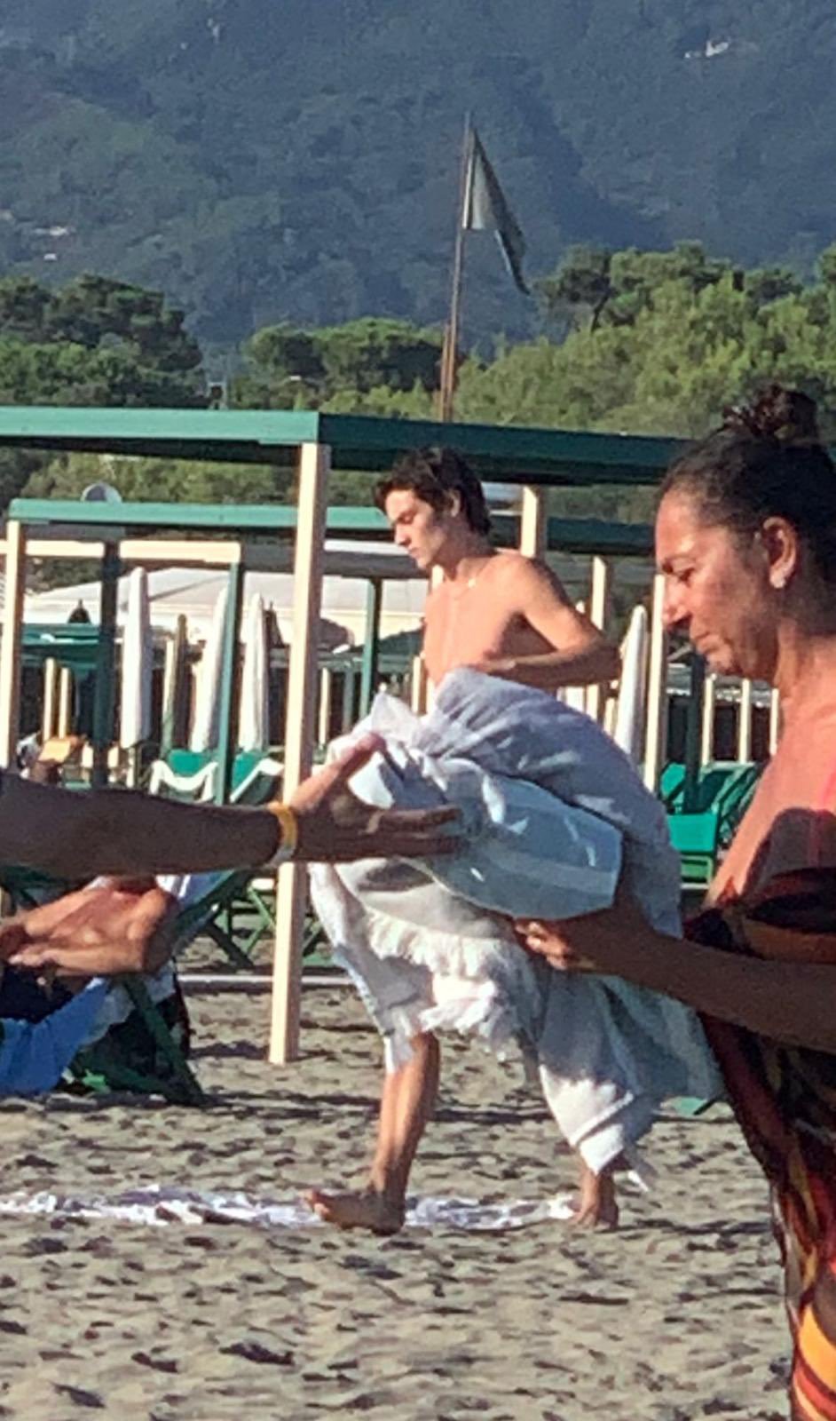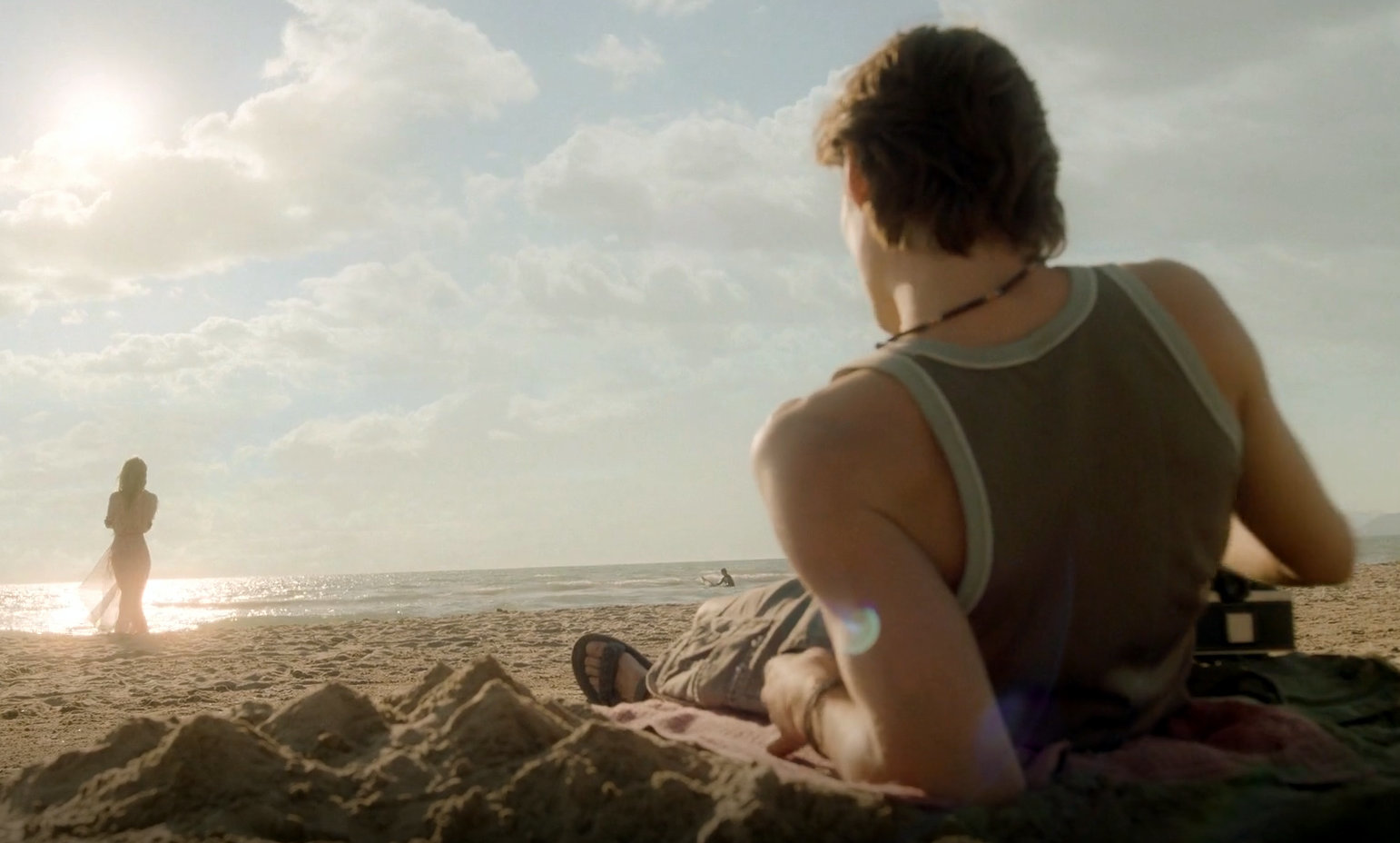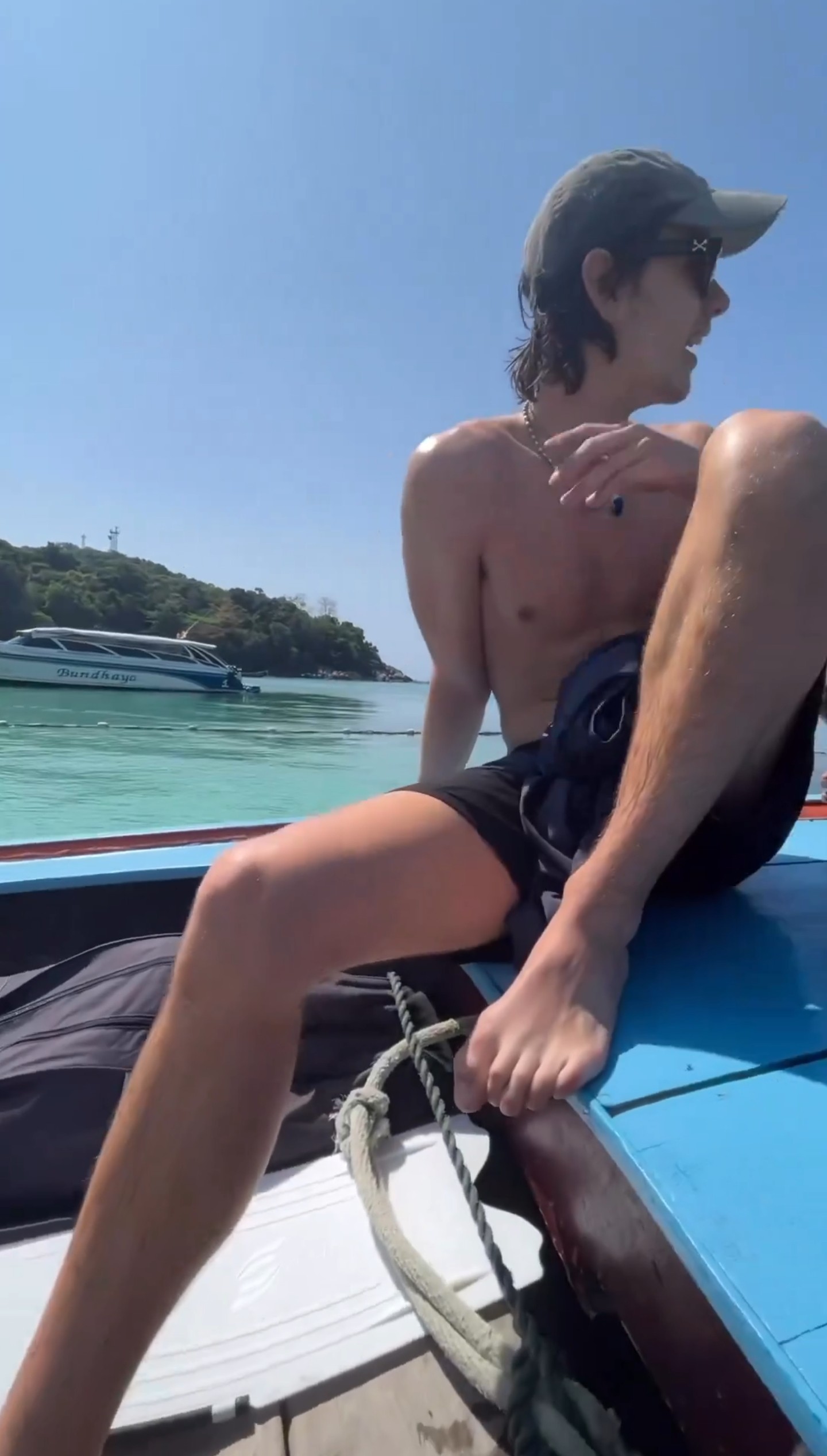 Louis Partridge barefoot