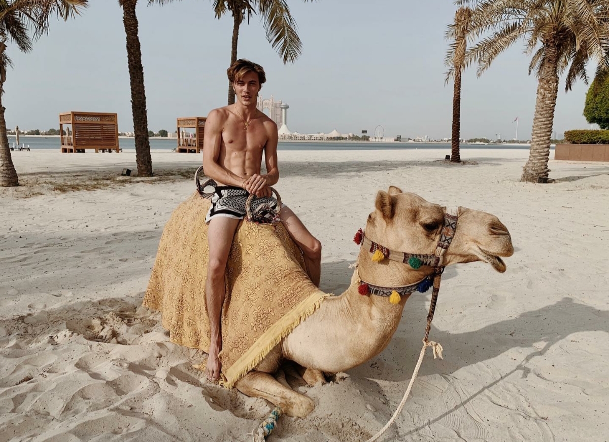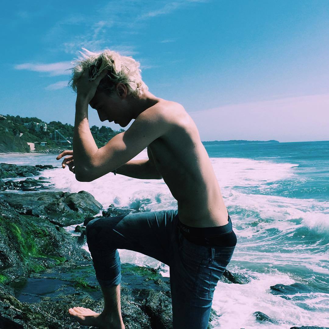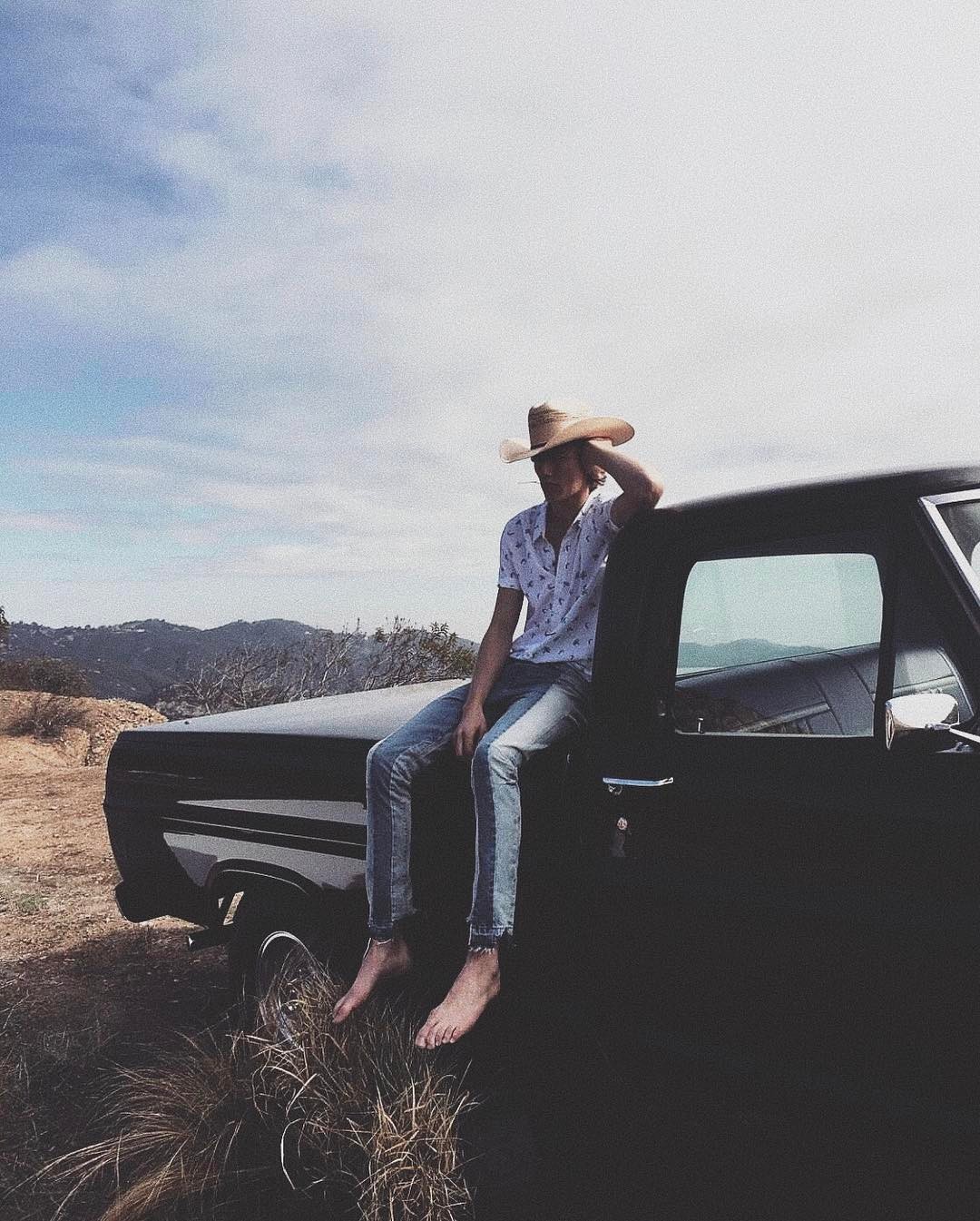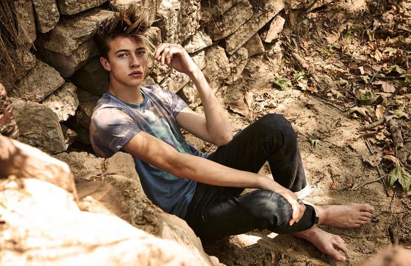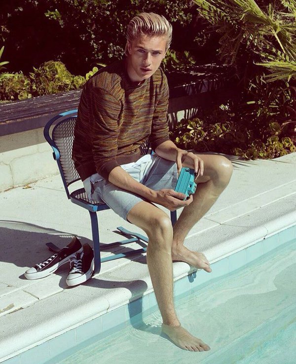 Lucky Blue Smith barefoot