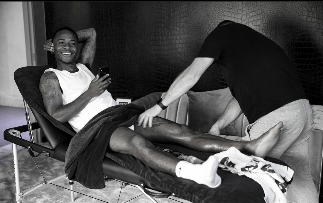 Raheem Sterling barefoot