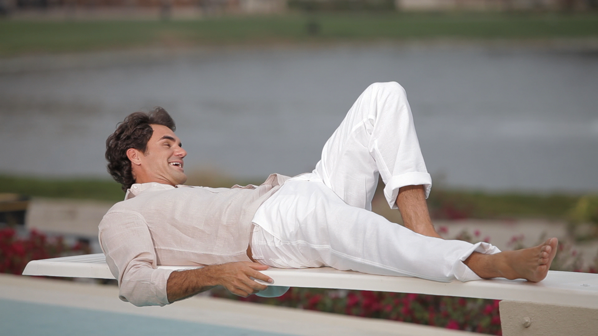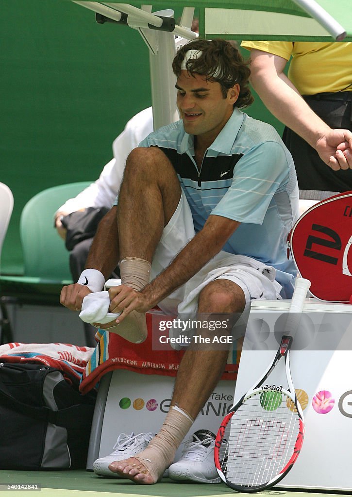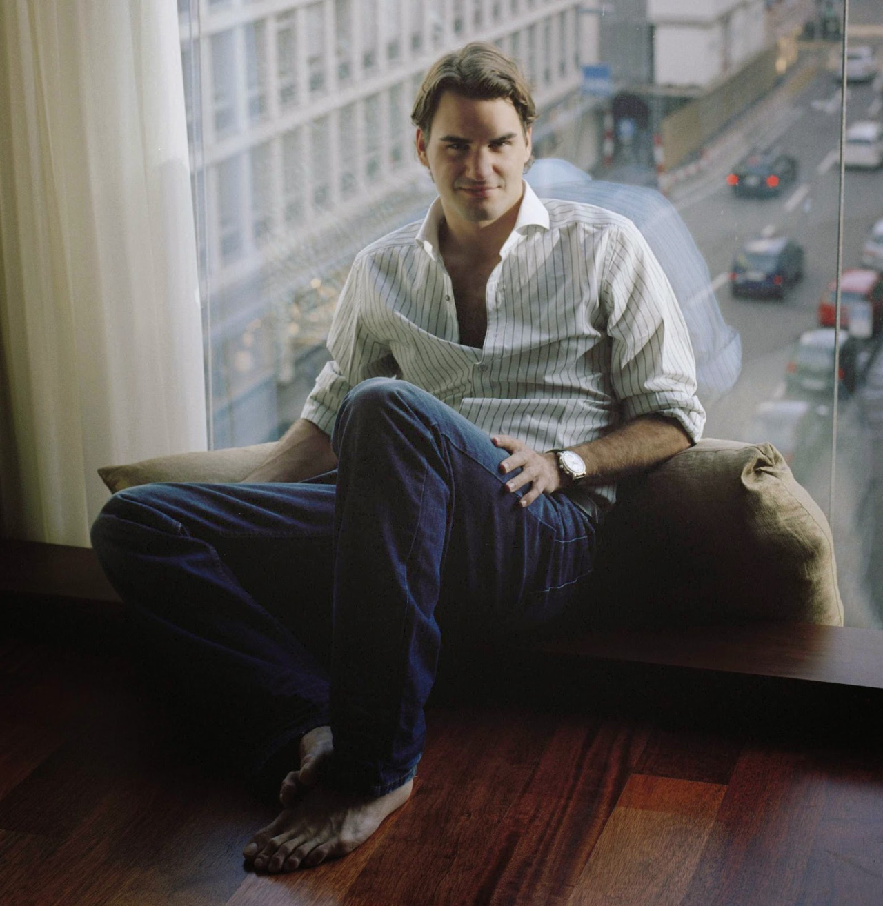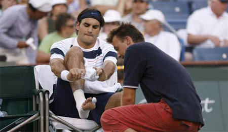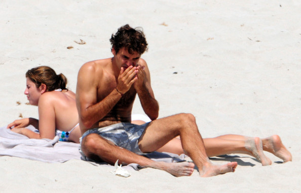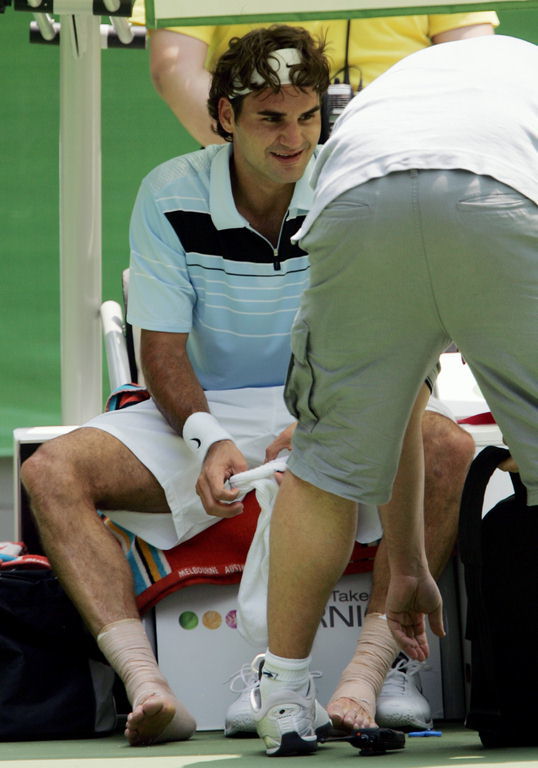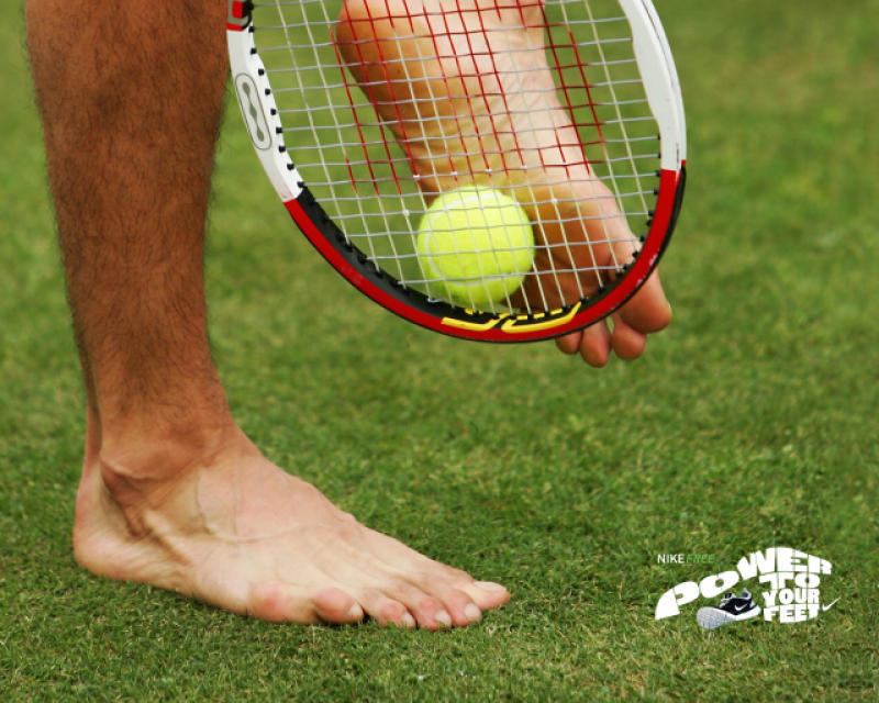 Roger Federer barefoot