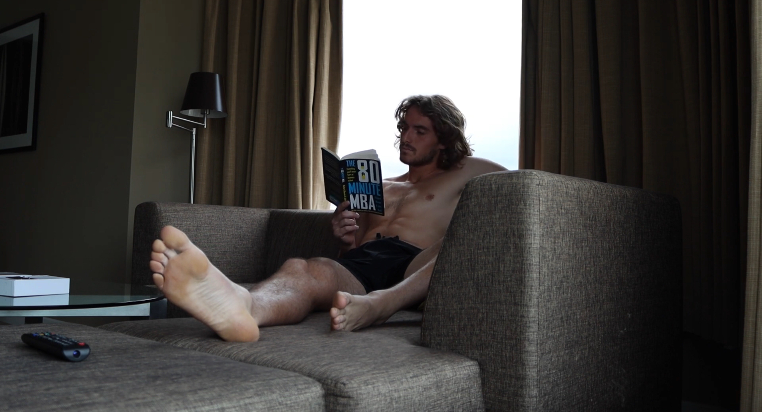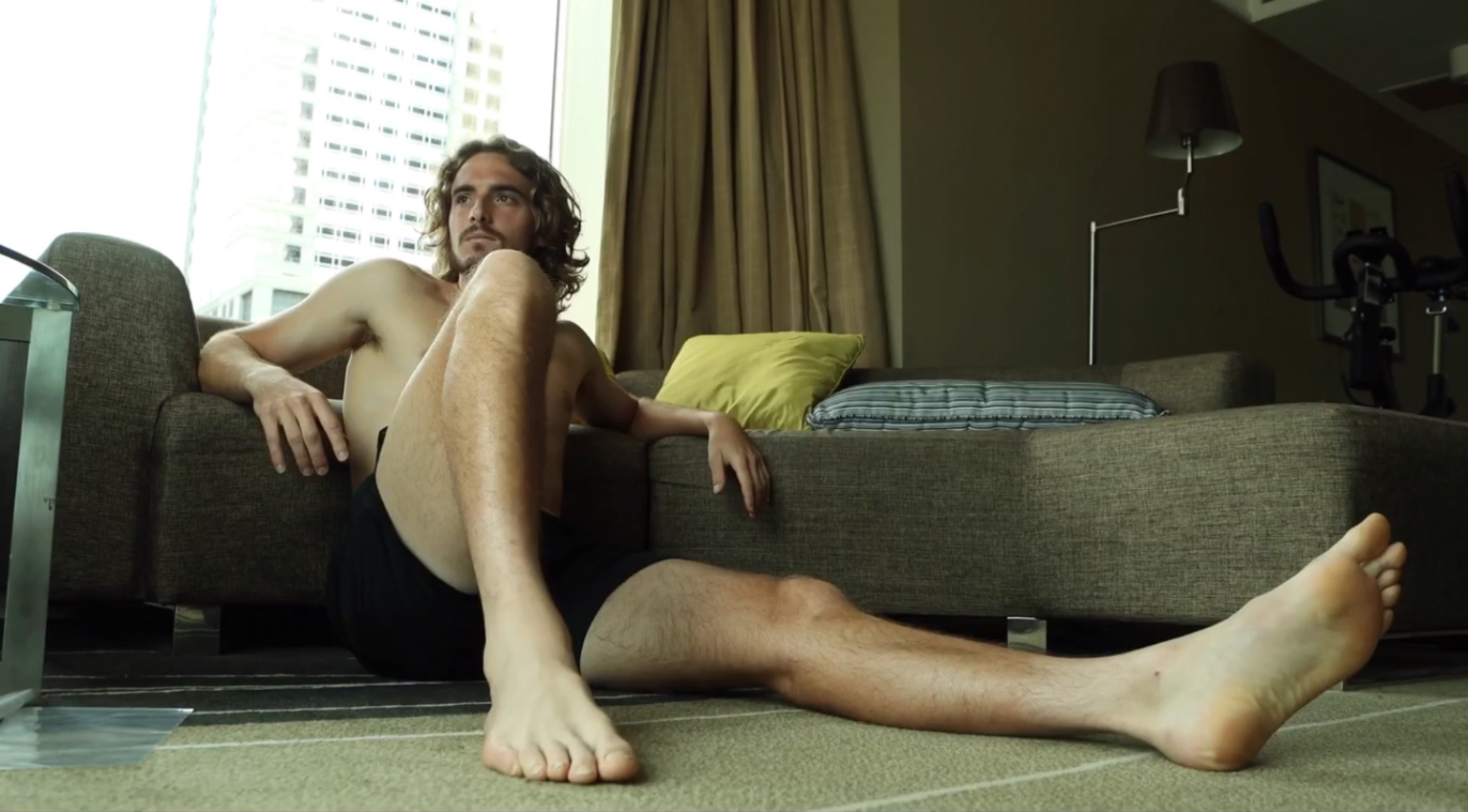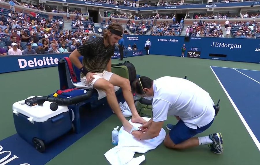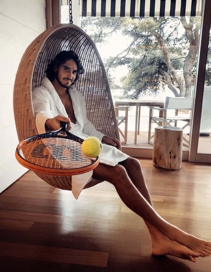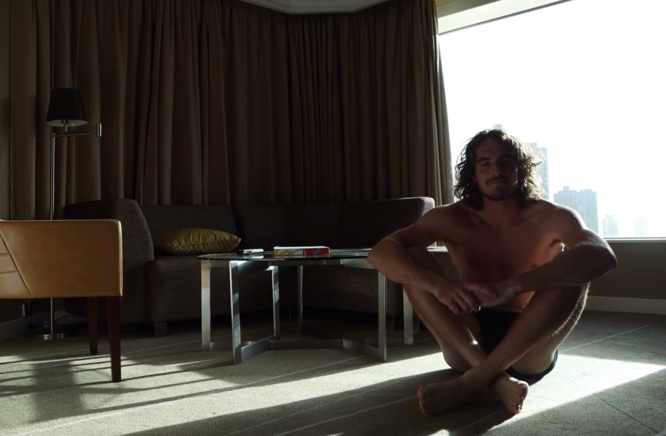 Stefanos Tsitsipas barefoot