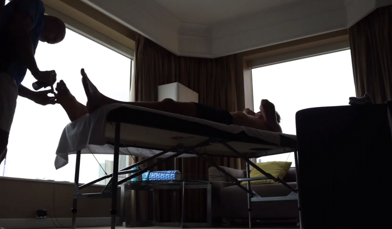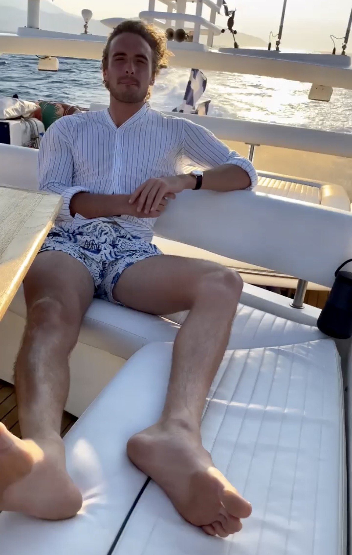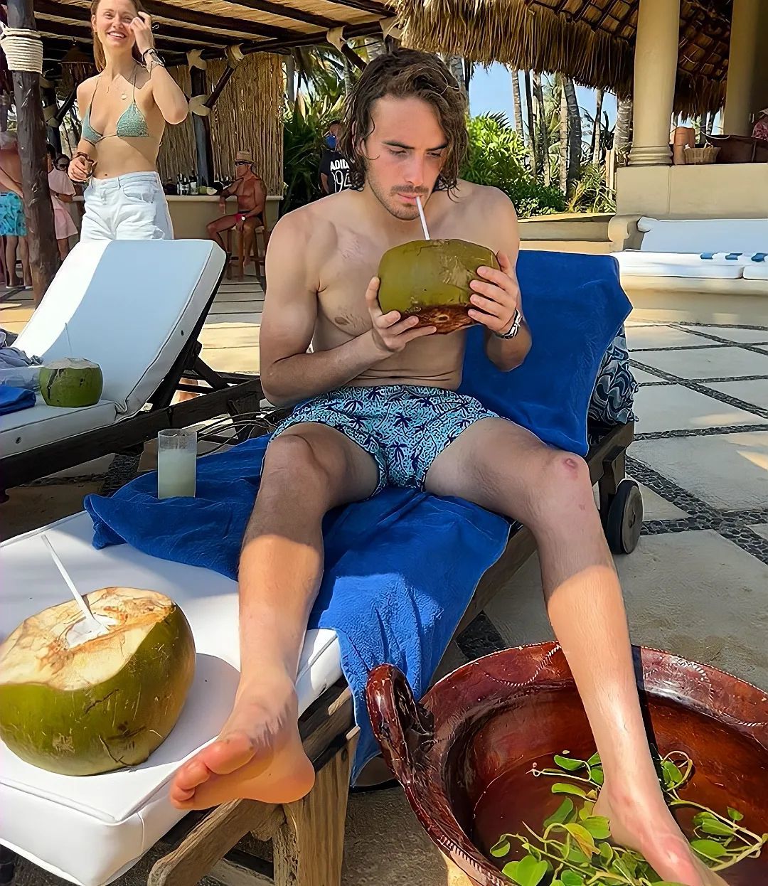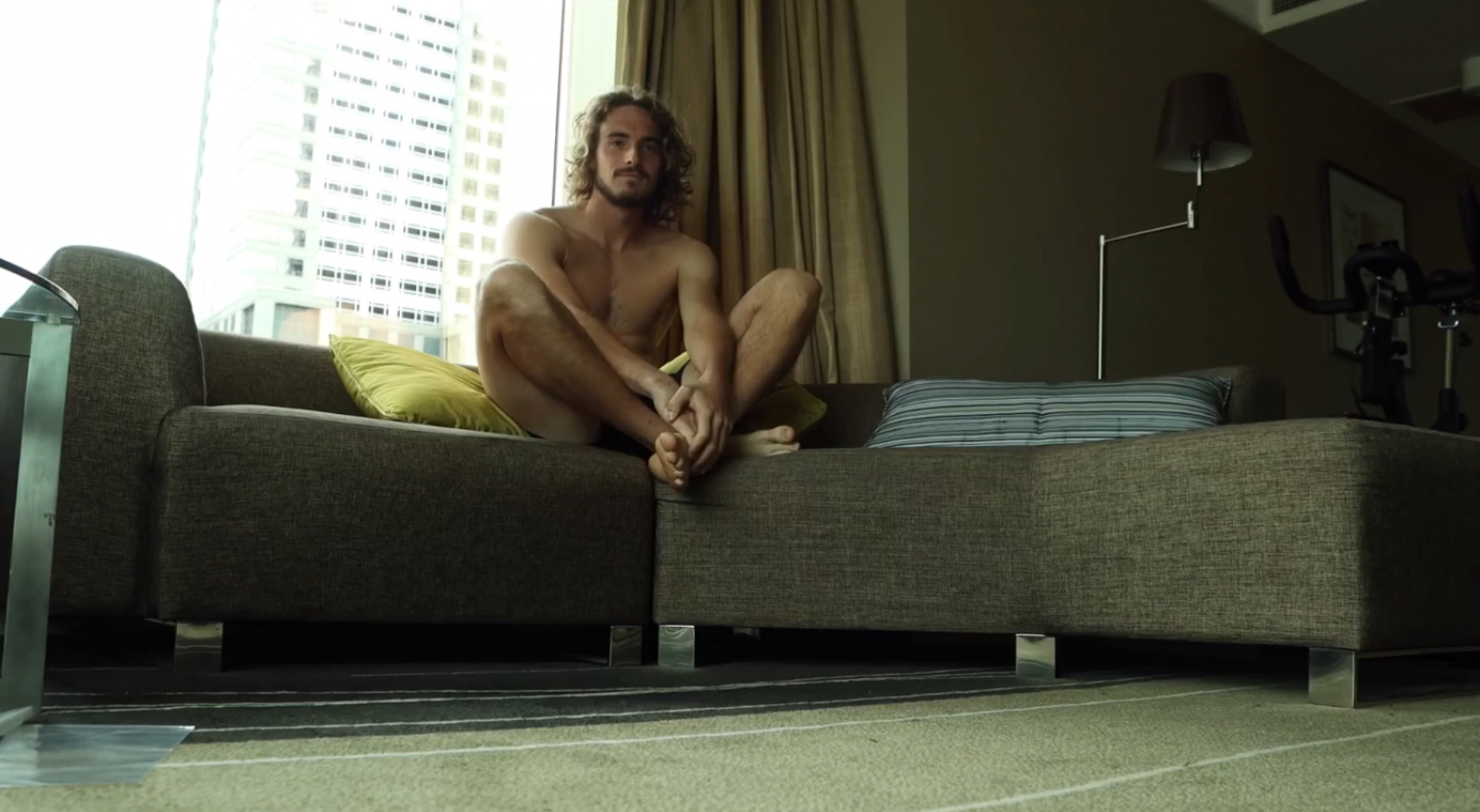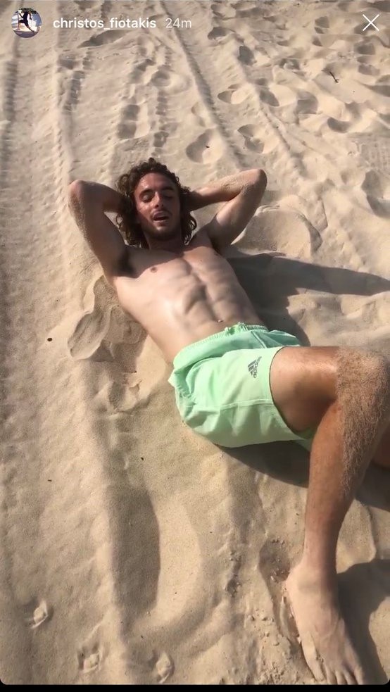 Stefanos Tsitsipas barefoot