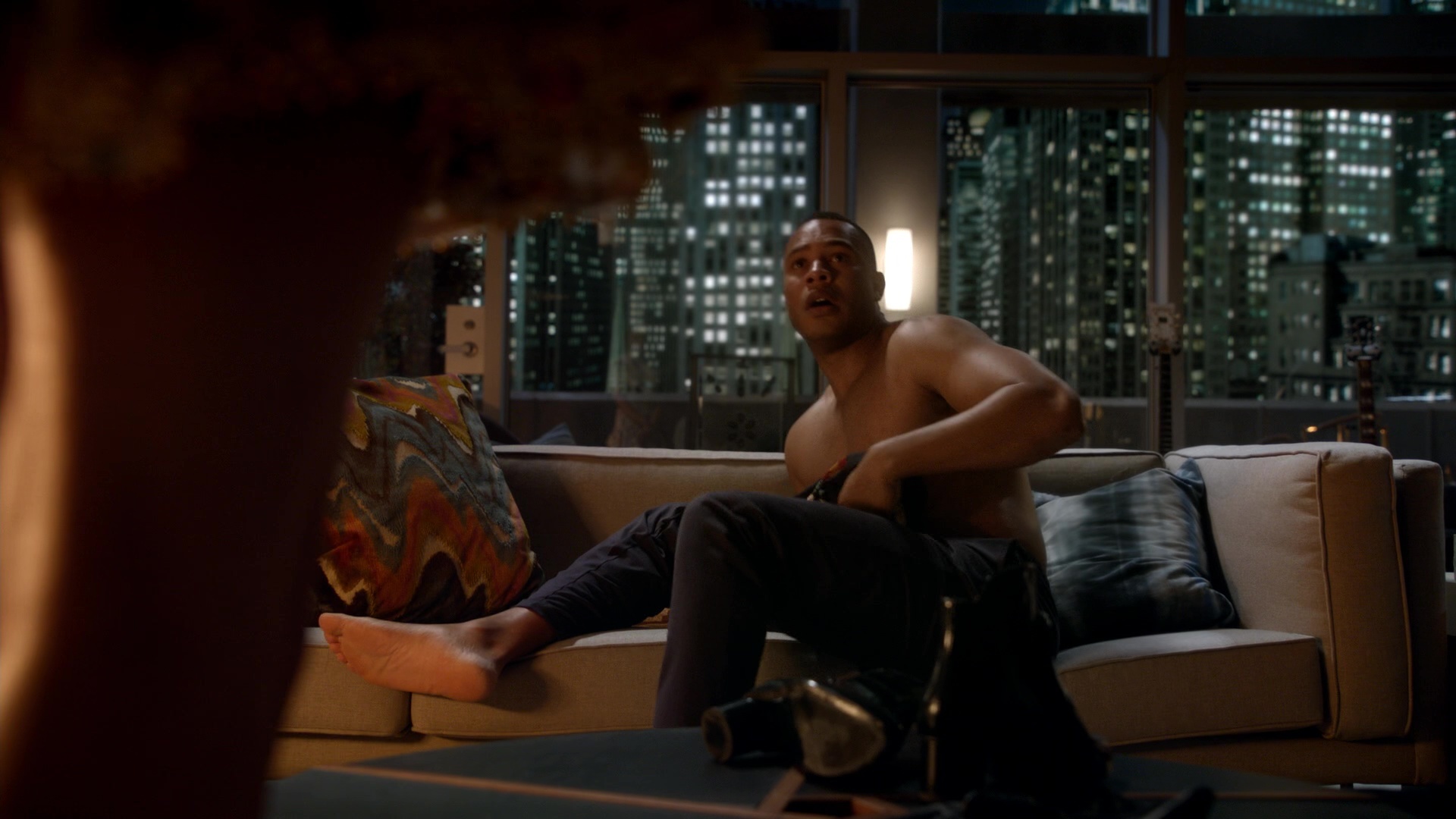 Trai Byers barefoot