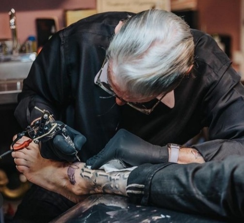 Travis Barker barefoot