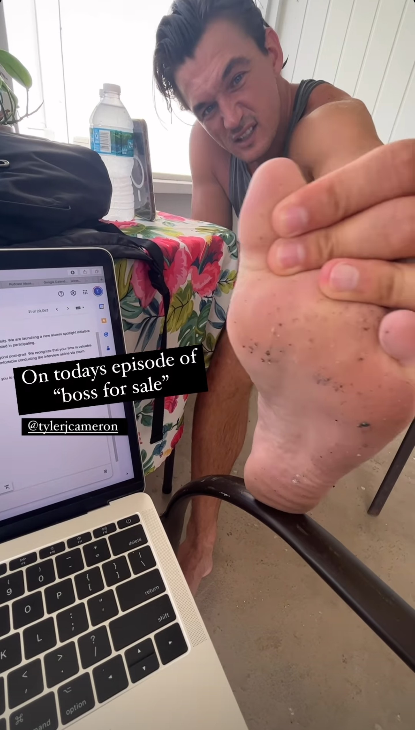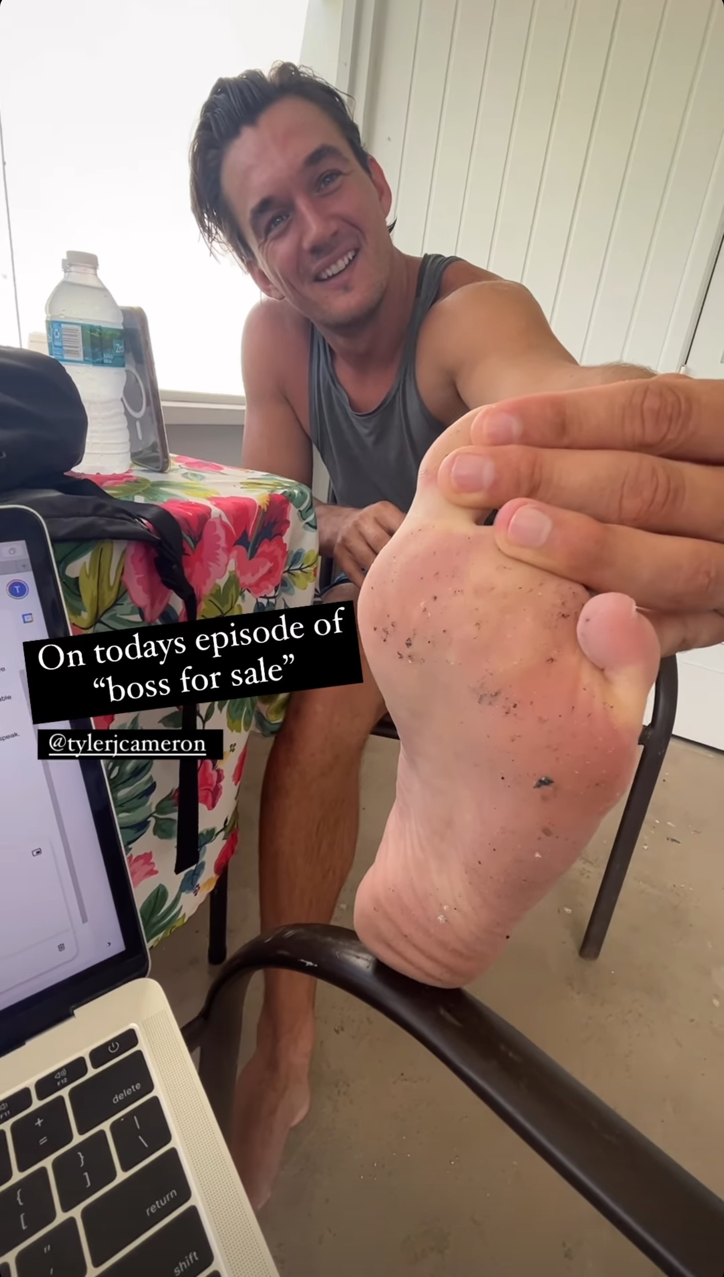 Tyler Cameron barefoot
